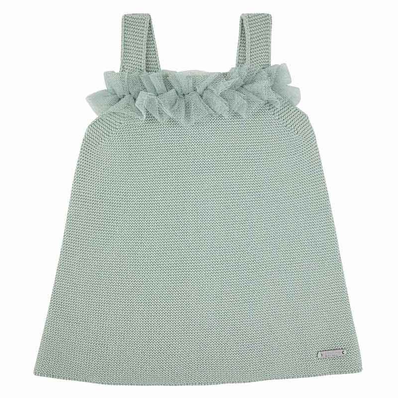 Abito a punto legaccio con tulle in 100% cotone
