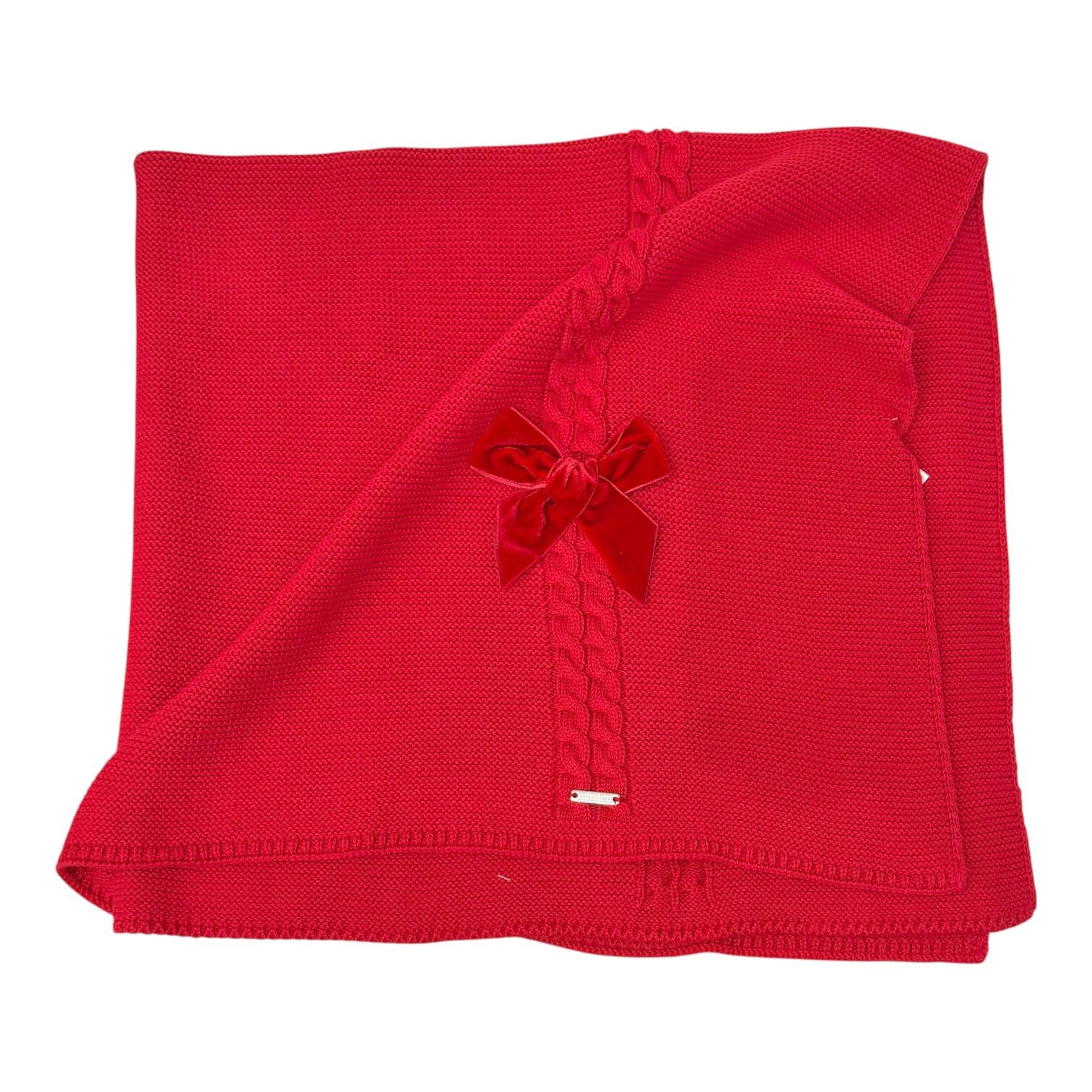 Scialle a maglia legaccio con dettaglio di treccia e fiocco di velluto abbinato.