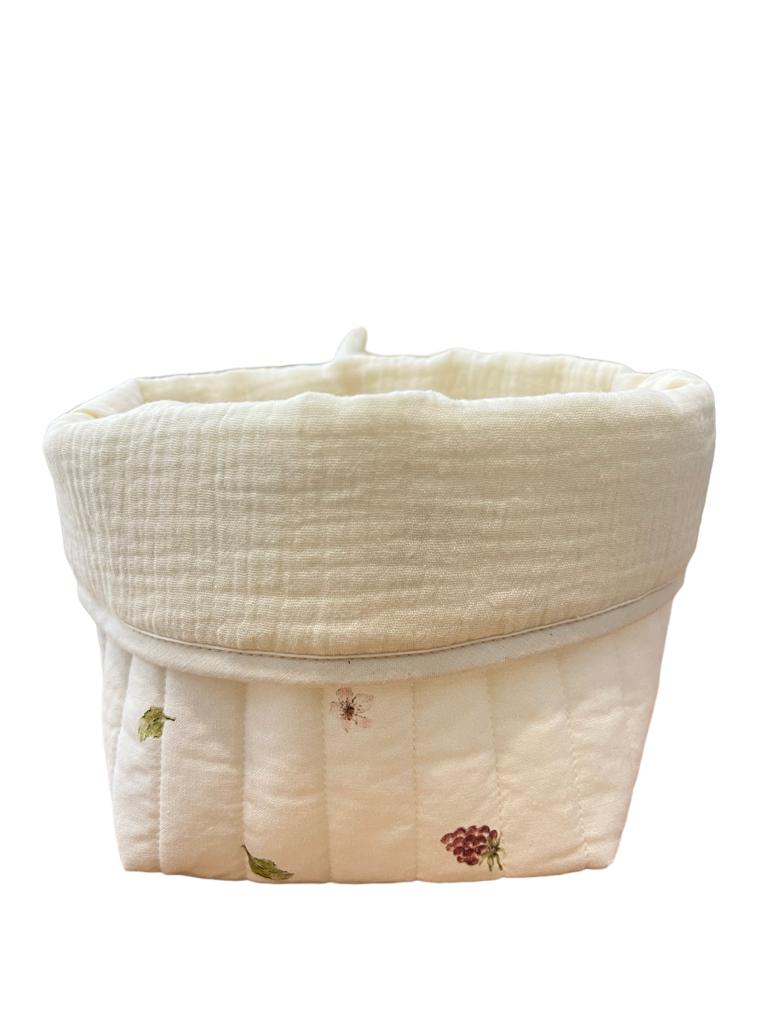 Cestino/contenitore trapuntato a doppia faccia per riporre accessori, inclusi cosmetici per bambini o pannolini. Il cesto è realizzato in due tessuti: il lato esterno è in cotone satinato trapuntato. La sua trama lo rende delicato e liscio al tatto. Anche l'interno è in cotone, ma in questo caso non trapuntato. Il contenitore può essere arrotolato ovunque , a tua discrezione. Il cesto aiuterà a organizzare lo spazio accanto al fasciatoio , completerà anche la decorazione interna .