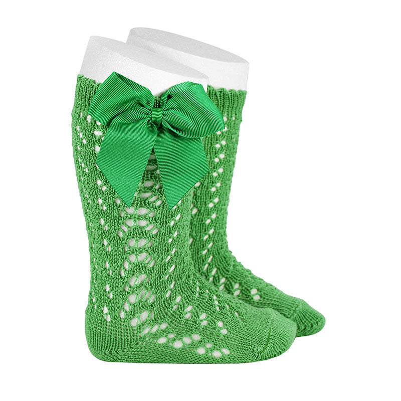 Calzini lunghi 100% cotone traforate con fiocco sul lato.