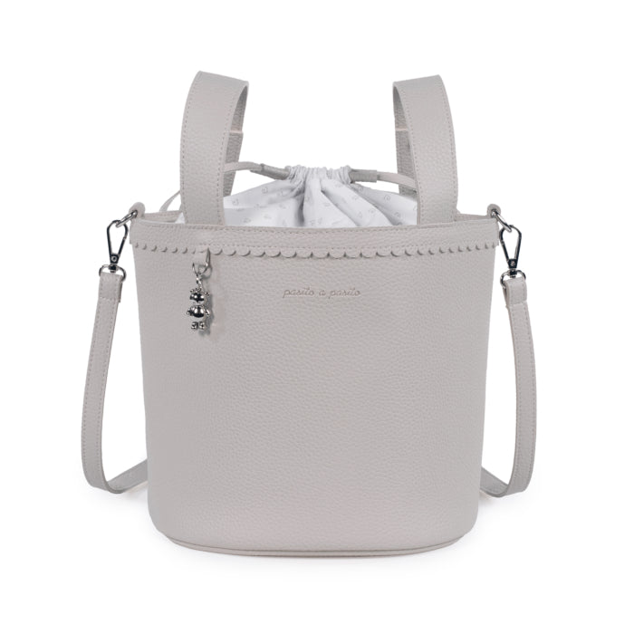 La borsa a forma di secchiello Icon di Pasito a Pasito è il complemento ideale per completare il tuo look durante le passeggiate con il tuo bambino, attaccata al passeggino o a spalla. La sua pelle sintetica resistente e morbida la rende leggera e durevole. Ha ampio spazio all'interno e chiusura con lacci per non perdere nulla.
