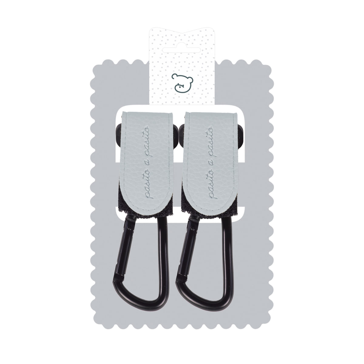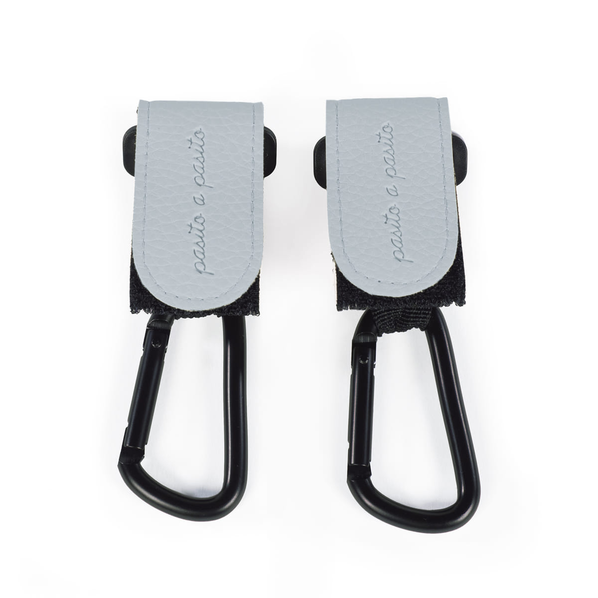 Set di 2 ganci per passeggino Icon in ecopelle. Gancio in metallo. Molto facile da attaccare grazie alle sue cinghie in velcro. Perfetto per appendere il cestino o qualsiasi borsa tu abbia bisogno di portare sul passeggino. Supporta fino a 5 kg di peso. Universale.