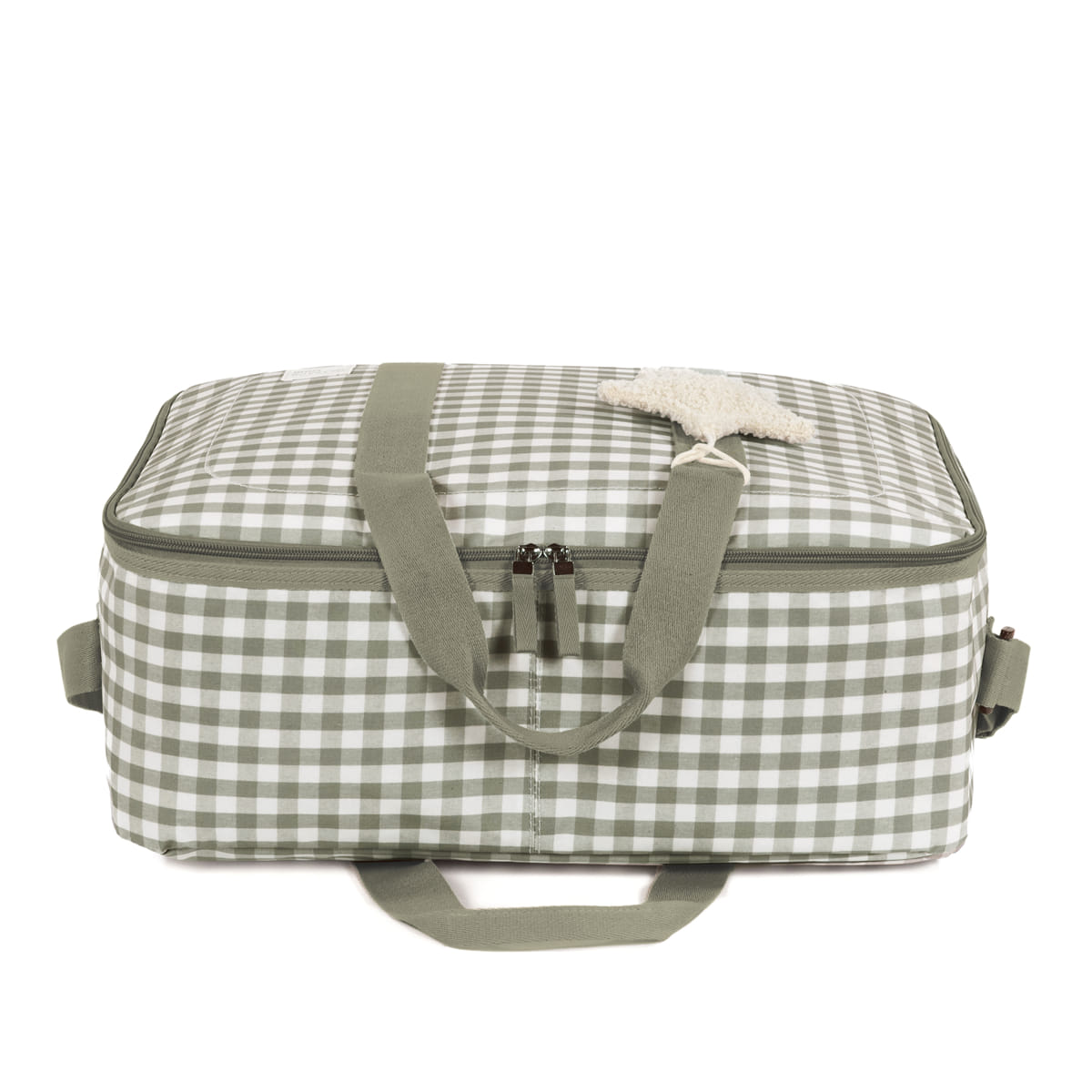 La valigia per neonati a quadri Caetana è una borsa pensata appositamente per il momento più importante della gravidanza, ovvero l’arrivo del bambino, un momento in cui ci sono molte cose da preparare. Per questo avete bisogno di uno spazio confortevole per trasportare tutto il necessario per voi, il papà e il bambino. Questa valigia per neonati è il modello perfetto per contenere tutto ciò che non può mancare in questo giorno speciale. È comoda, leggera e maneggevole, con dimensioni rettangolari e una pratica apertura per coprire tutte le esigenze. Ha una sicura chiusura a zip a due vie per una facile apertura, una lunga tracolla e manici corti per il trasporto. Lo scomparto interno è foderato in tinta con gli elastici per contenere i vestiti e tenere tutto a posto. Include un ciondolo a forma di stella su cui è possibile ricamare il nome del bambino per personalizzare la borsa. Alta qualità e stile. Realizzata in materiale resistente e facile da pulire a mano o in lavatrice a 30°C. Walking Mum protegge il vostro bambino utilizzando i migliori tessuti, privi di coloranti azoici e di sostanze nocive per la salute. La nostra collezione Walking Mum mantiene tutta la qualità del marchio Pasito a Pasito ma con una particolare impronta di stile urbano e moderno che non passa inosservato, per vestire diversamente le passeggiate con il vostro bambino. Le borse premaman di questa linea sono più sportive e pratiche, pensate appositamente per le mamme e i papà moderni che apprezzano i design più attuali e di tendenza senza trascurare la qualità e la funzionalità degli accessori che completano e rendono più confortevoli le passeggiate con i loro bambini. Specifiche: Materiali: 65% cotone /35% poliestere plastificato. Misure: 49X37X17 cm.