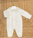 Tutina con posteriore, colletto fiorato , elegante e delicato.