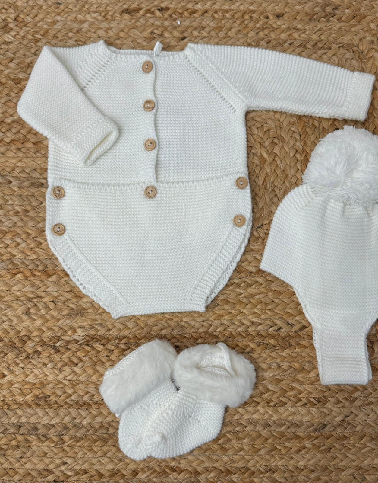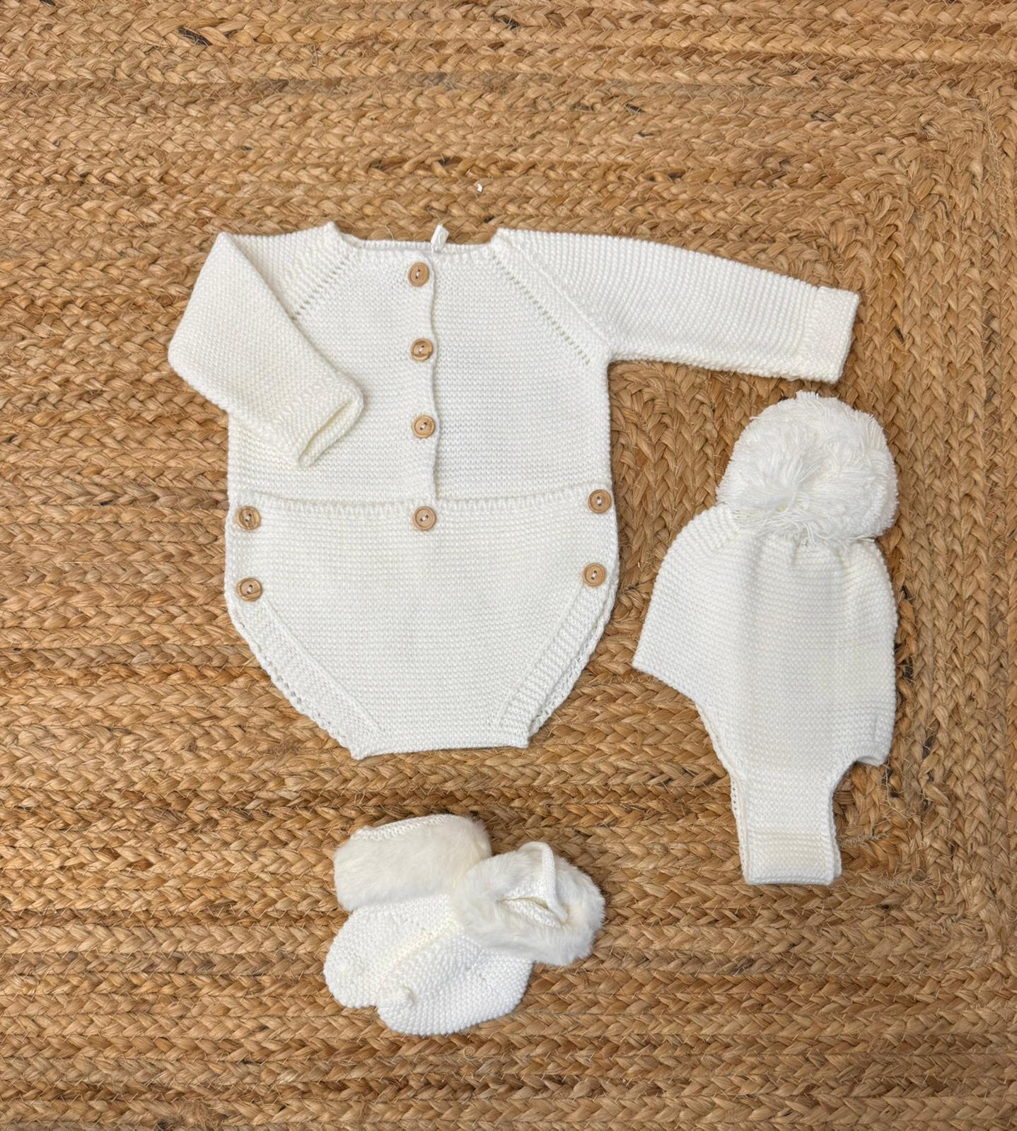 Pagliaccetto con cuffia e babbucce in misto lana