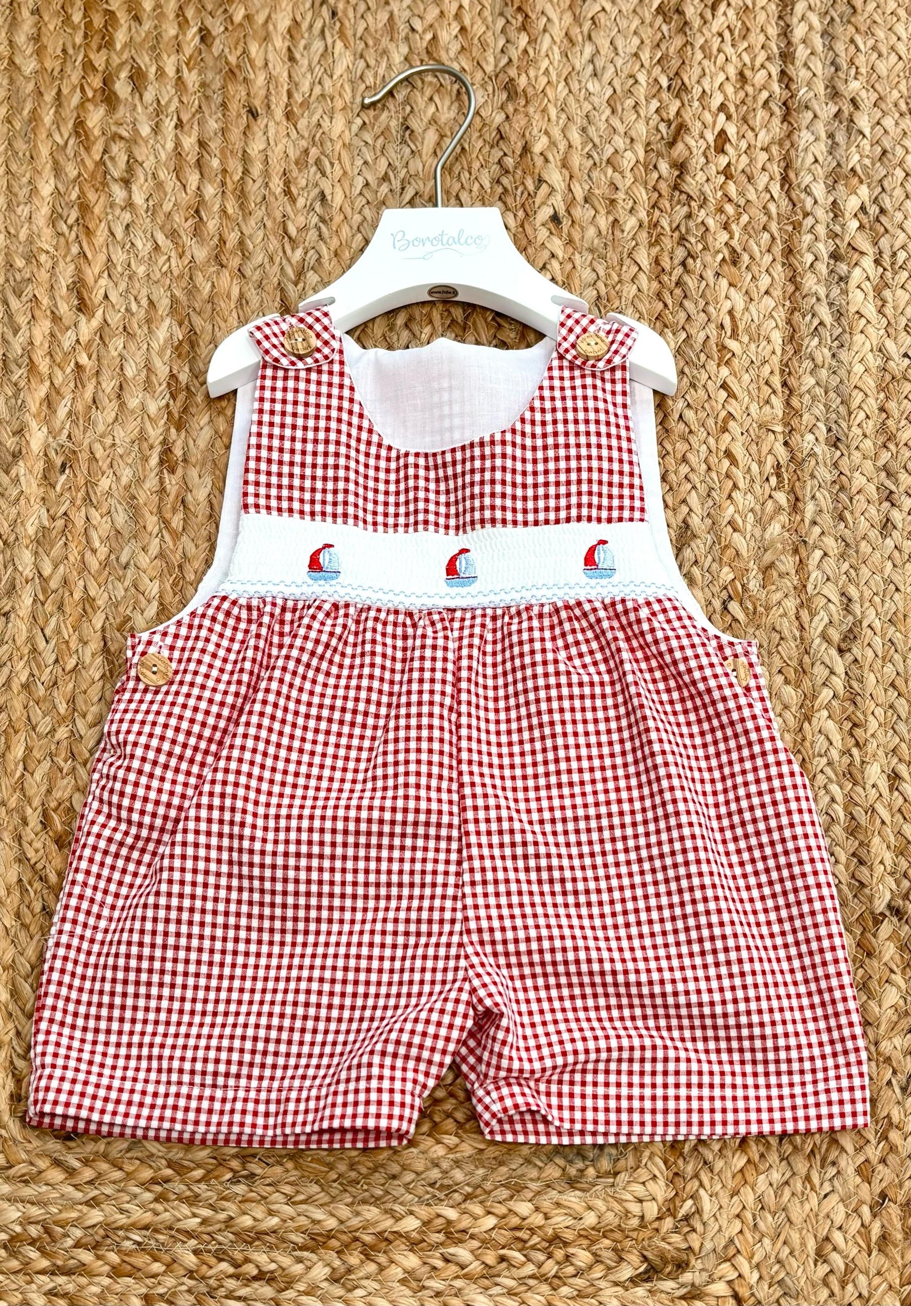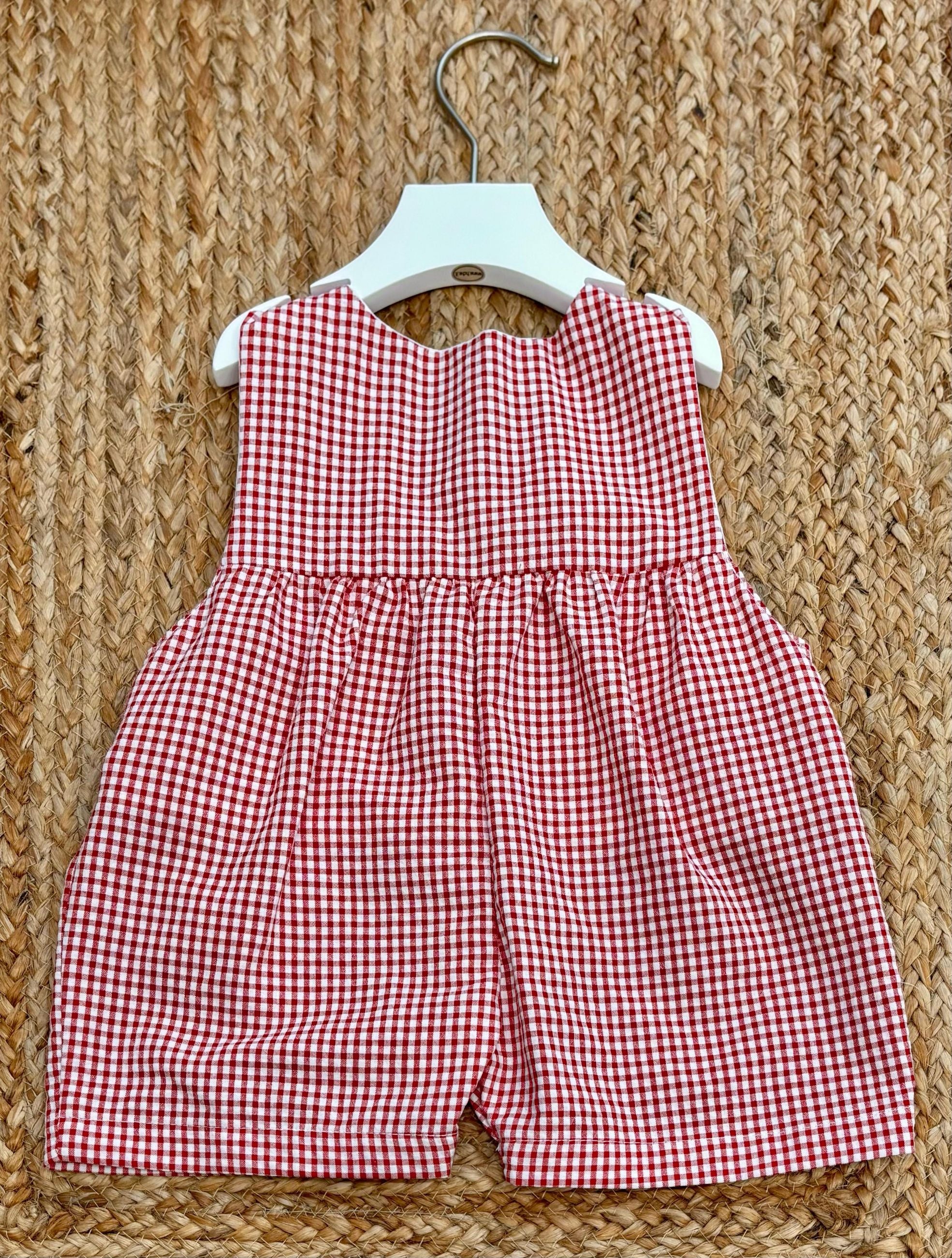Salopette a quadri con punto smock