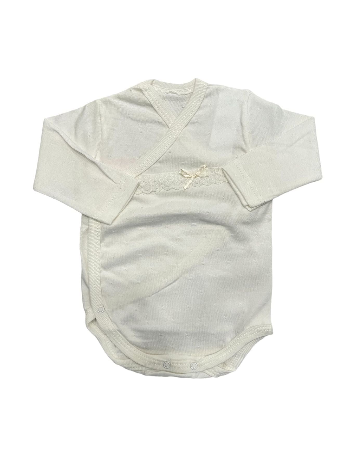 Body con apertura antipanico con fiocchetto e merletto in cotone
