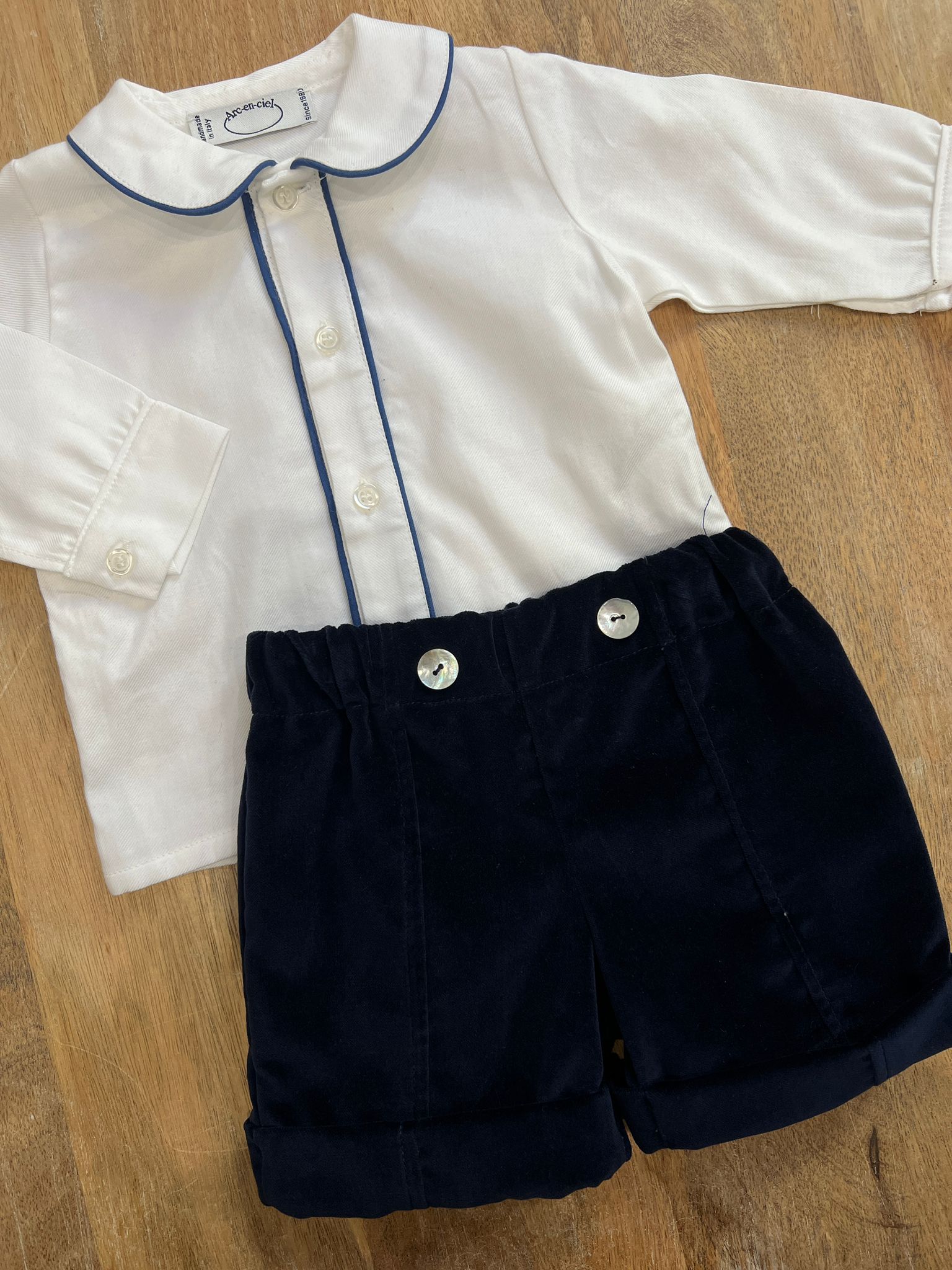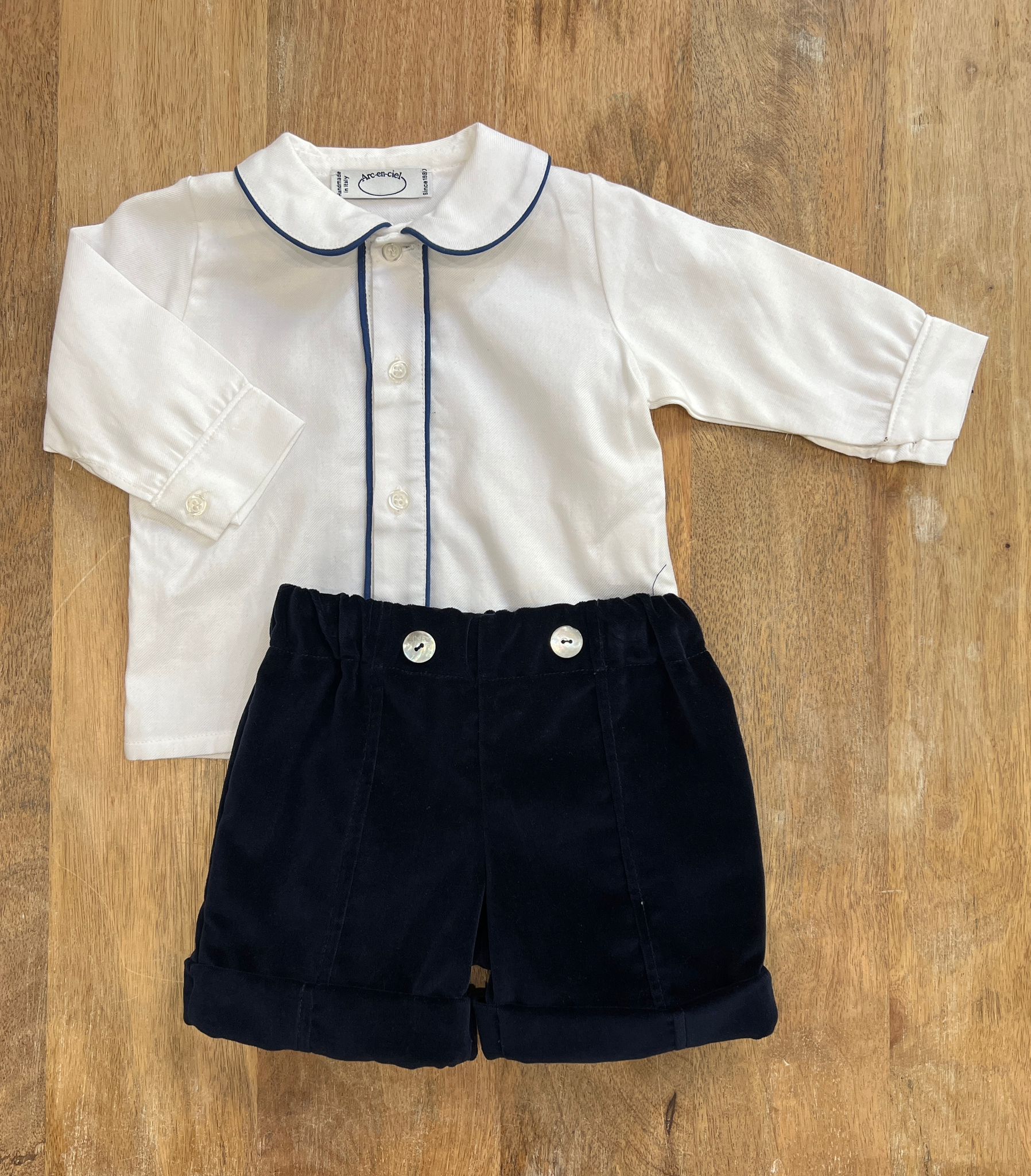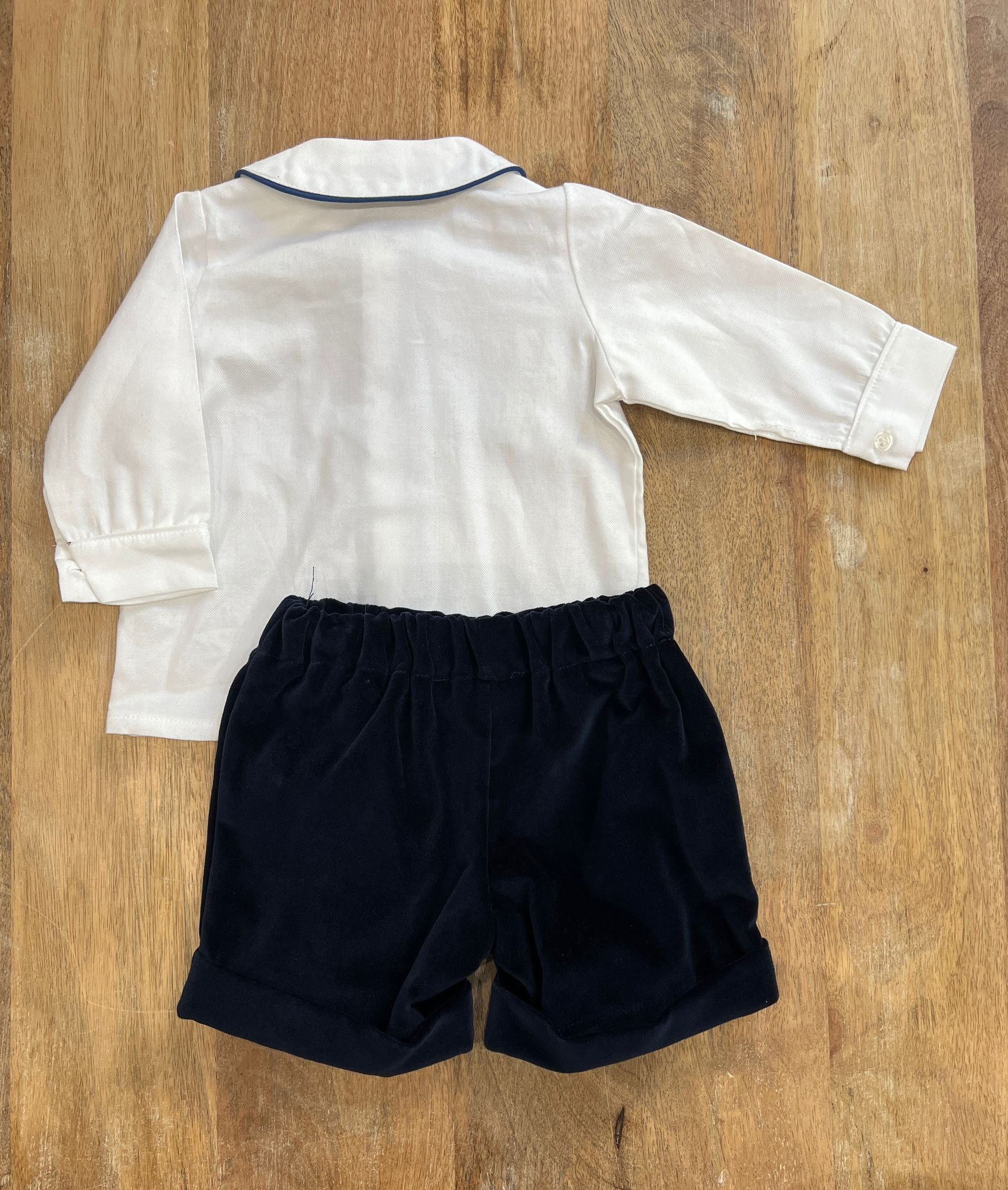 Completo con camicia e short in velluto