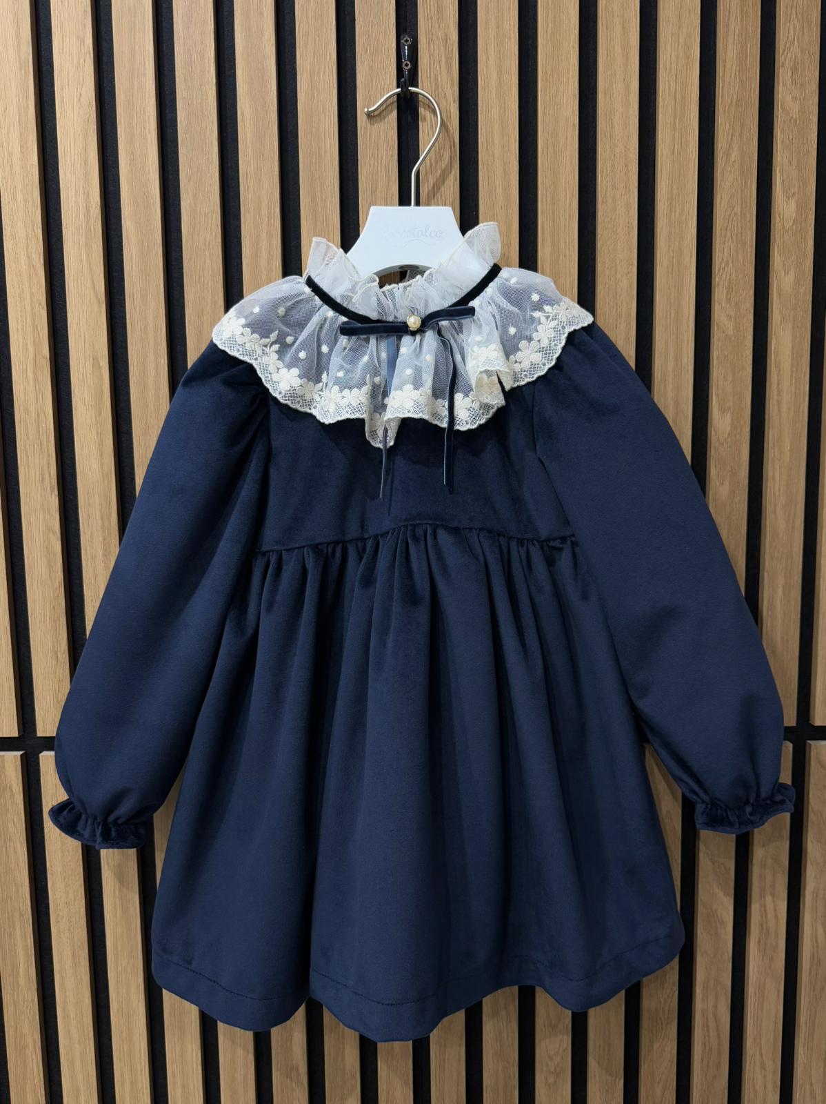 abito in velluto con collo in merletto