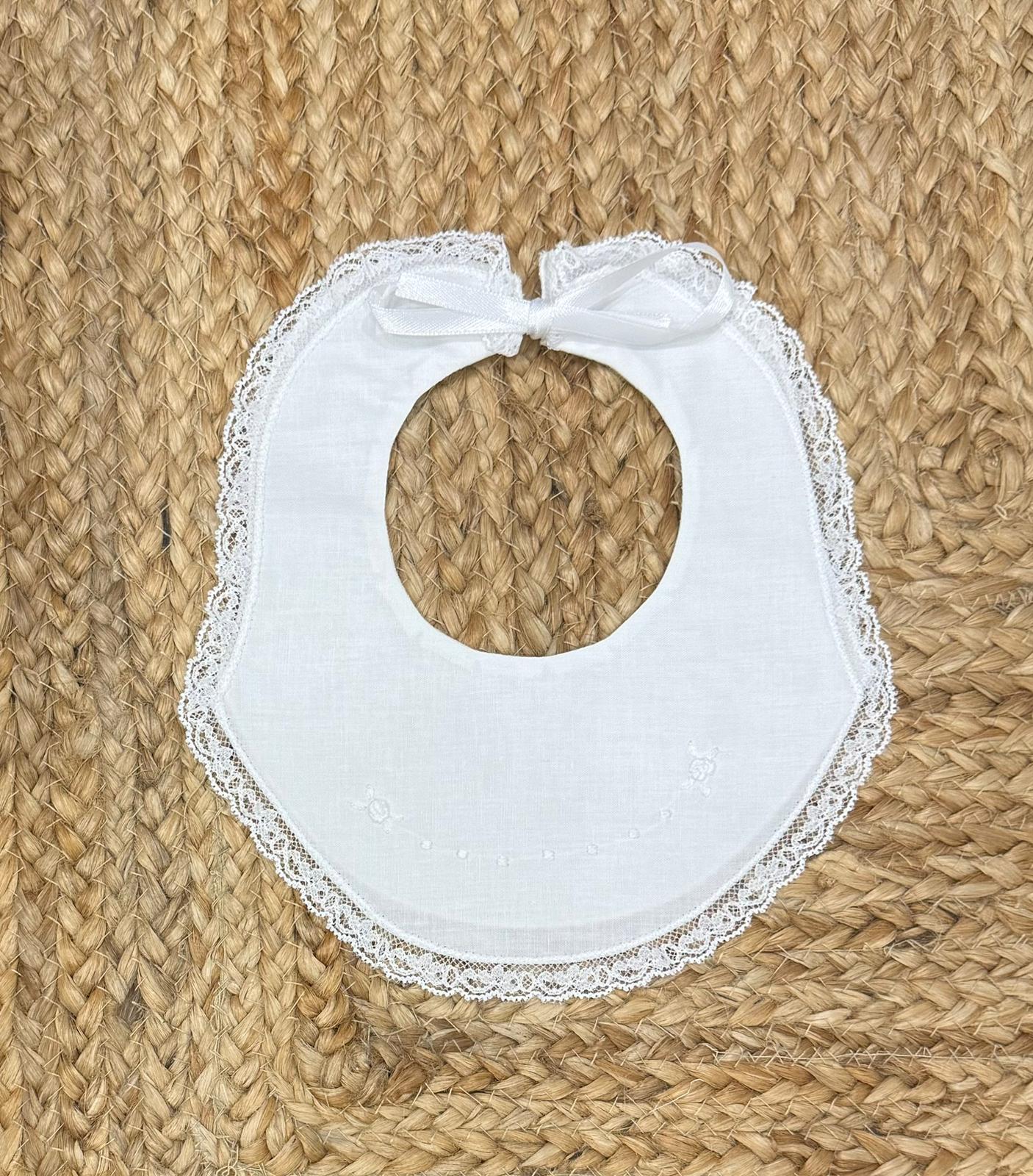Bavetta in cotone con merletto ricamate a mano.