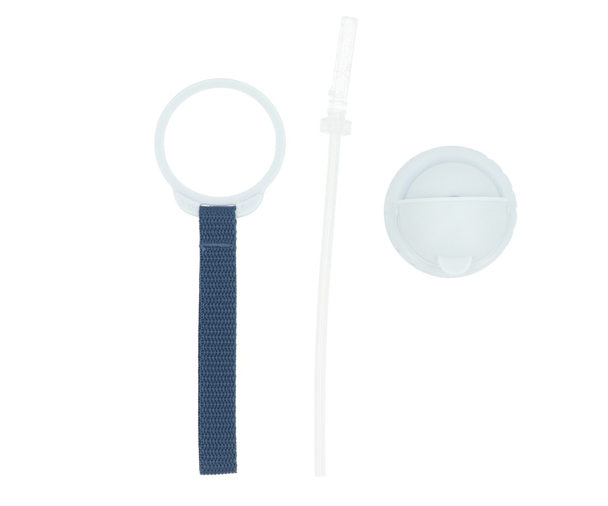 Con cannuccia flessibile, tappo abbattibile e cordino per appenderla al polso o allo zainetto.