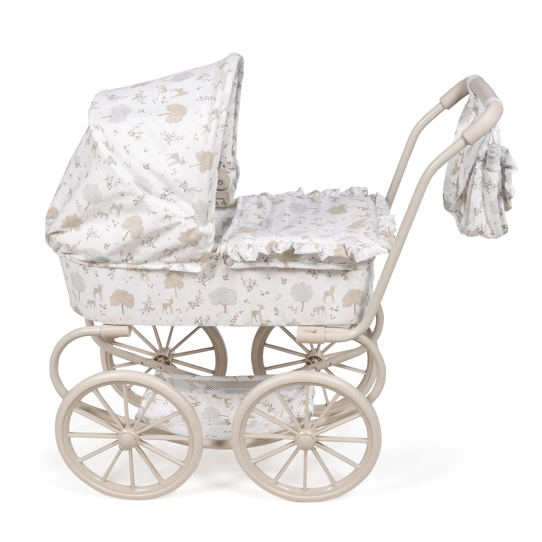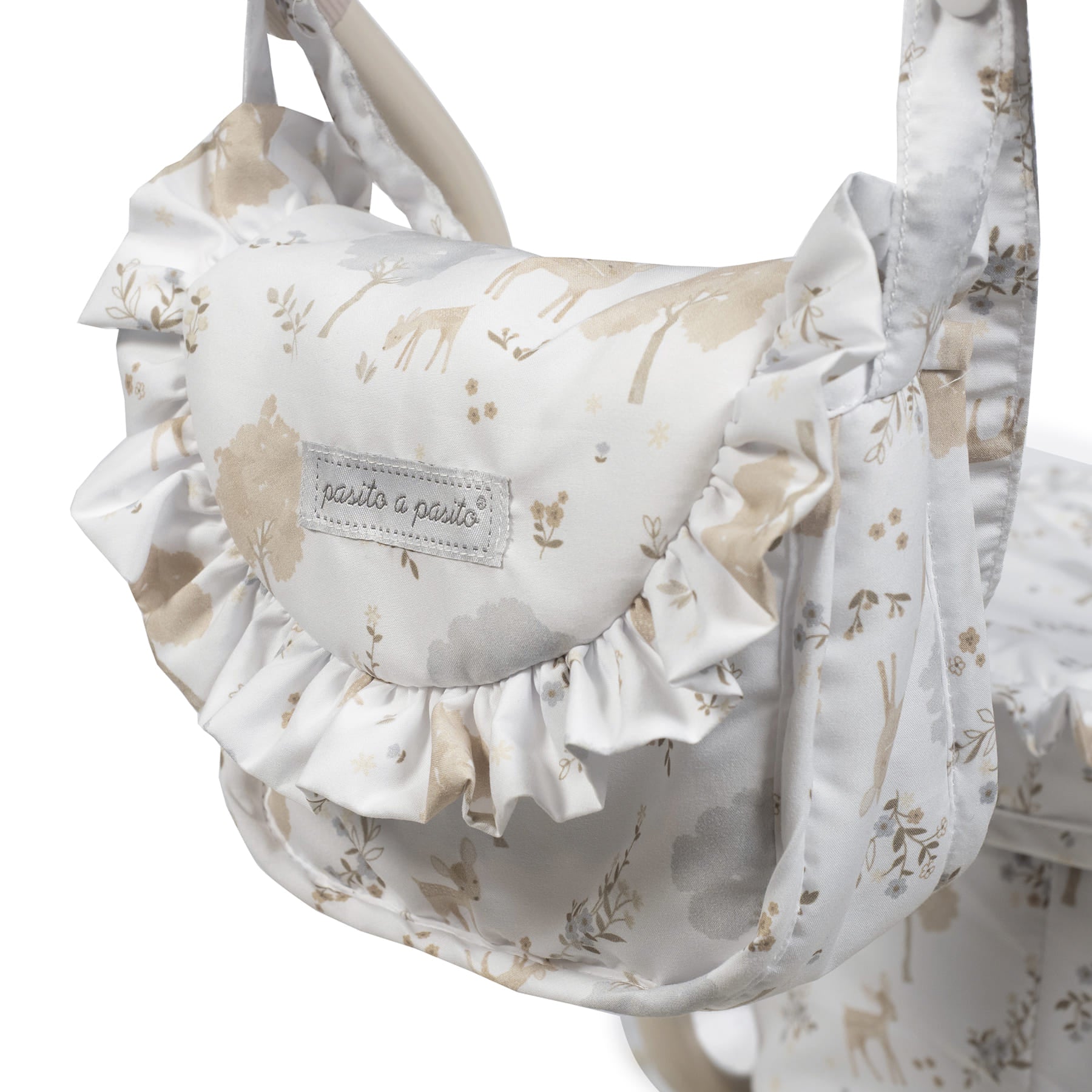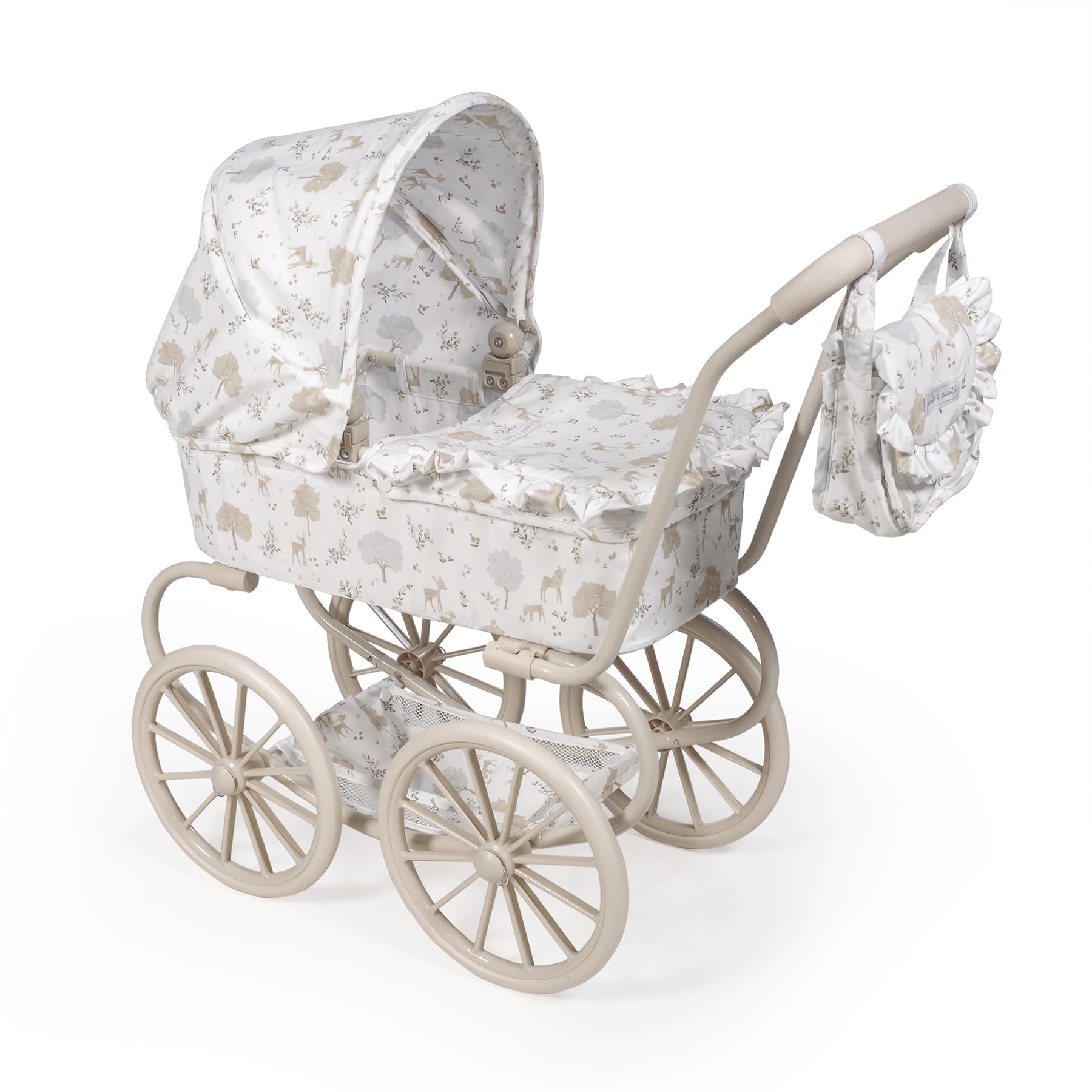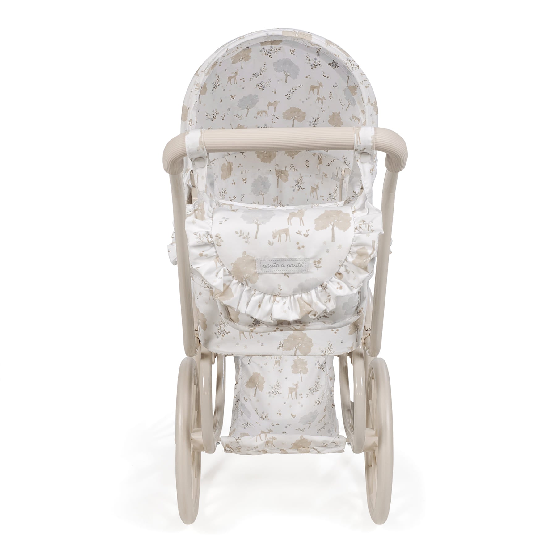 Classico passeggino per bambole Pasito a Pasito Collezione Nara – Passeggiate da sogno per le tue bambole! Immergiti nell’eleganza e nella tradizione con il magnifico passeggino classico per bambole dell’esclusiva collezione Nara di Pasito a Pasito. Questo incantevole passeggino, con il suo design vintage e i dettagli raffinati, è il giocattolo perfetto per bambini e bambine dai 3 ai 4 anni che desiderano portare a spasso le loro bambole con un tocco di classe. Design classico e romantico: ispirato ai passeggini di una volta, presenta una struttura robusta con grandi ruote in stile tradizionale e una capottina spaziosa, che evocano nostalgia e bellezza senza tempo. Emblematica stampa “Nara”: decorato con la delicata e dolce stampa di cerbiatti della collezione Nara di Pasito a Pasito, nei toni del beige, che conferisce un tocco di raffinatezza e tenerezza. Dettagli premium: finiture curate nei minimi dettagli, con volant e una confezione impeccabile che sottolineano la qualità e la cura del marchio Pasito a Pasito. Altezza ideale del manubrio: con un manubrio alto 68 cm, questo passeggino è perfettamente adatto all’altezza dei bambini dai 3 ai 4 anni, garantendo una presa comoda e un’esperienza di gioco naturale. Ampio spazio per le bambole: le sue generose dimensioni di 74x41x68h cm lo rendono ideale per bambole da 30 a 42 cm, consentendo ai “bambini” di riposare e viaggiare in totale comfort. Include borsa da passeggio abbinata: il passeggino è accompagnato da un’adorabile borsa da passeggio con lo stesso motivo Nara, perfetta per i bambini per trasportare gli accessori delle loro bambole o i loro piccoli tesori. Struttura robusta e stabile: progettato per resistere al gioco quotidiano, garantendo stabilità e sicurezza ad ogni passeggiata. Conforme alla normativa europea EN-71: come tutti i giocattoli Pasito a Pasito, questo passeggino è stato fabbricato secondo i più elevati standard di sicurezza e ha superato i severi test della normativa europea EN-71, garanten