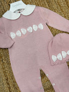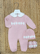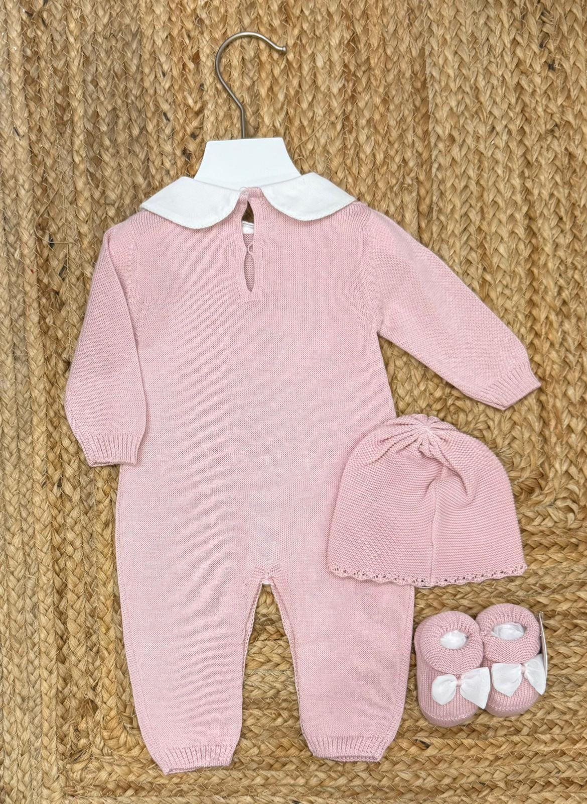 Tutina con cappello, babbucce con fiocco in organza