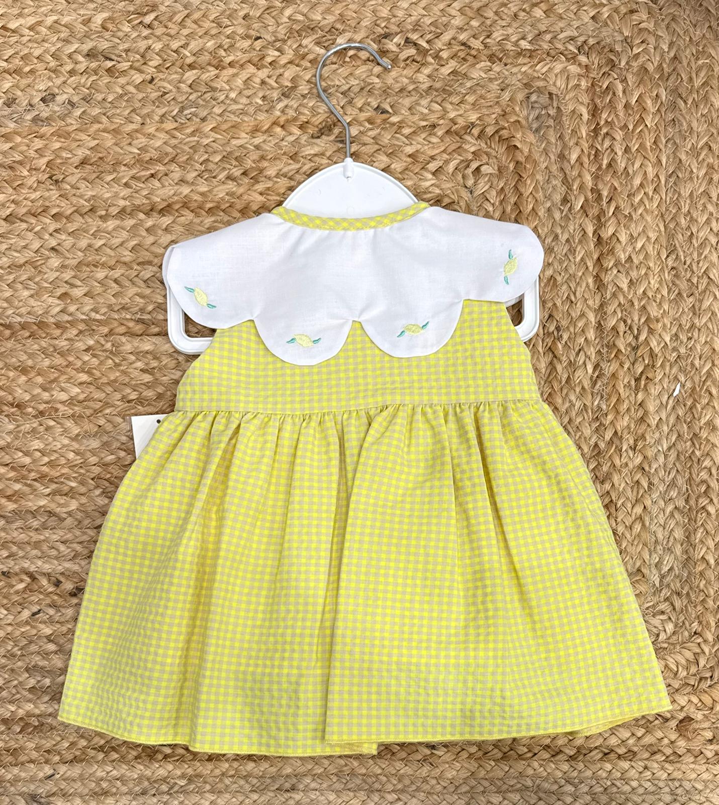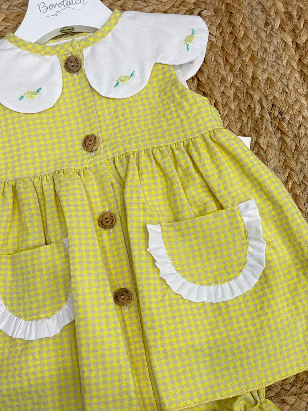 Completo con copripannolino con chiusura anteriore con bottoni in legno naturale, con limoni ricamati sul colletto
