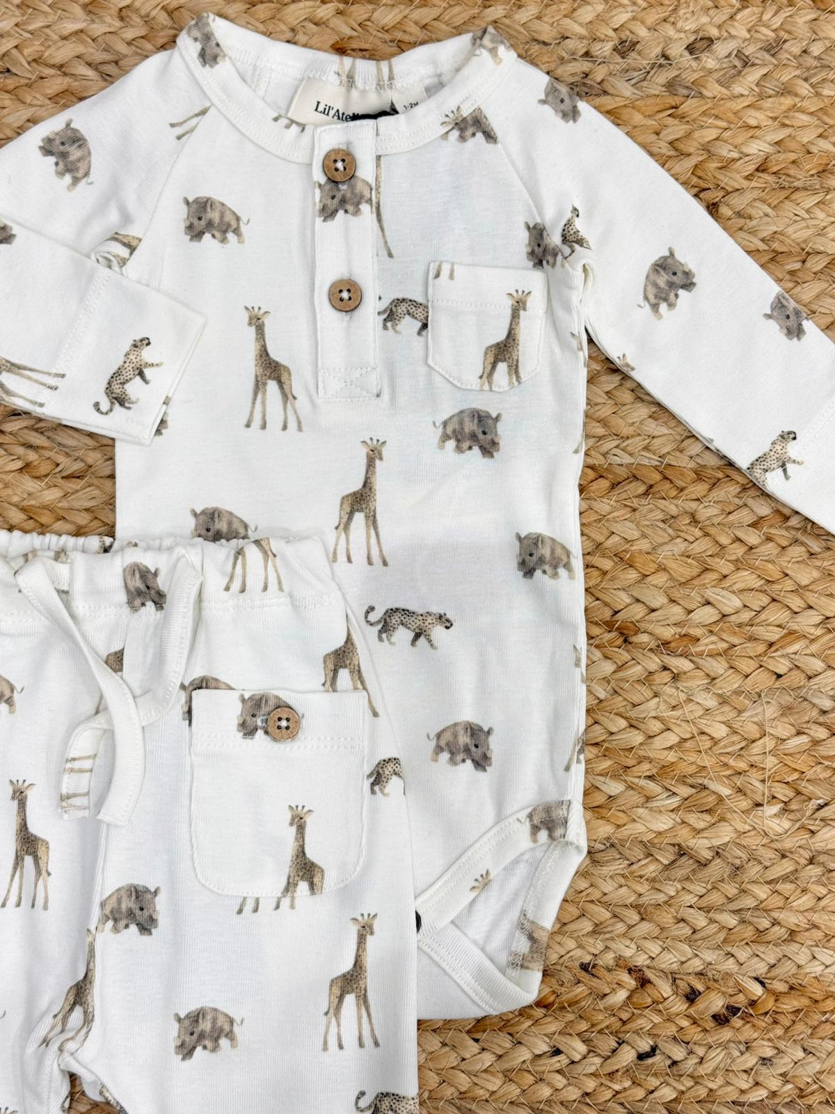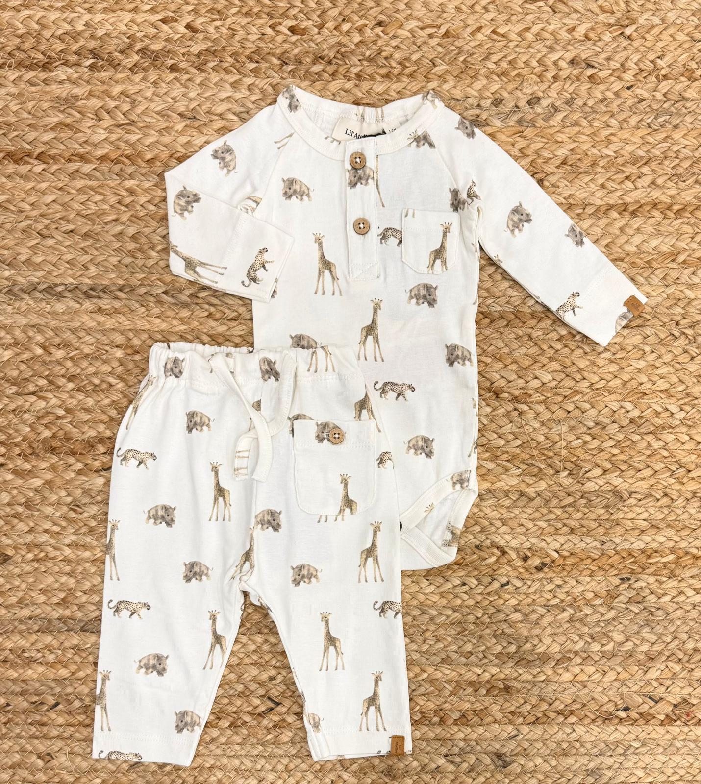 Completo in cotone con bottoni in legno naturale