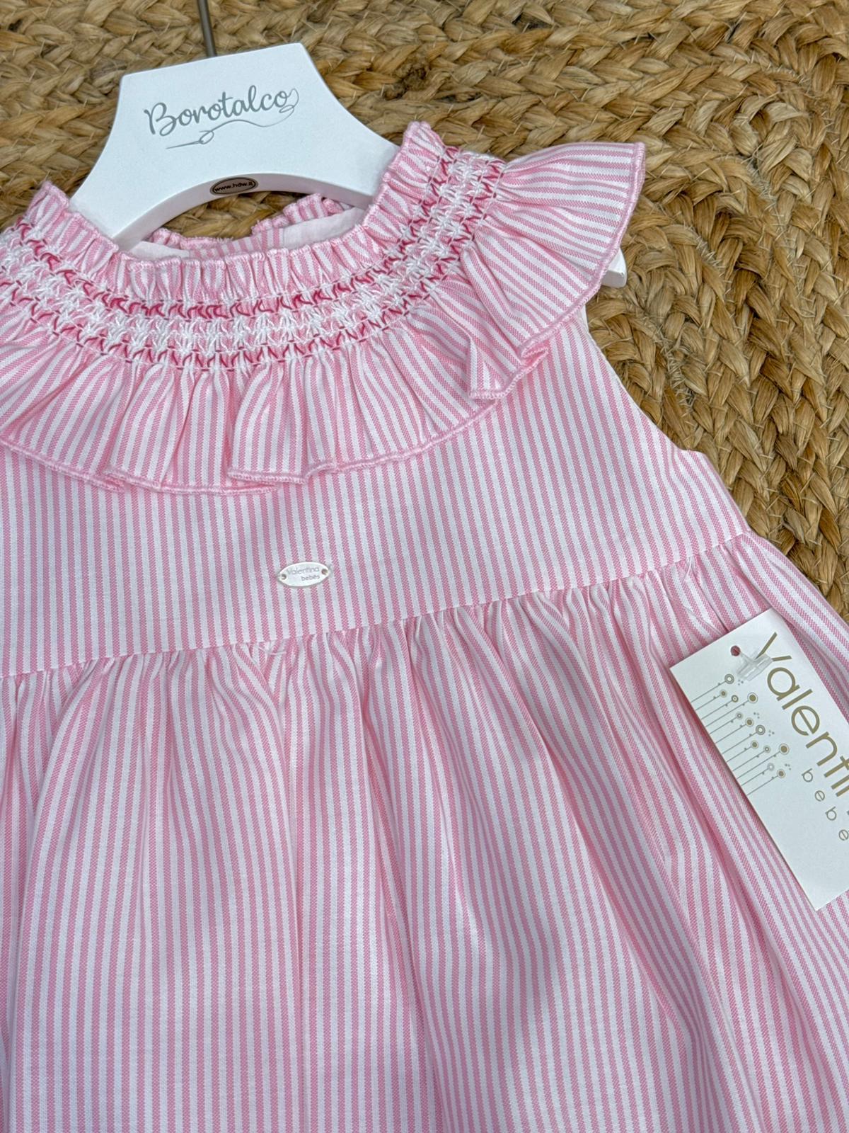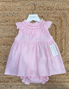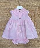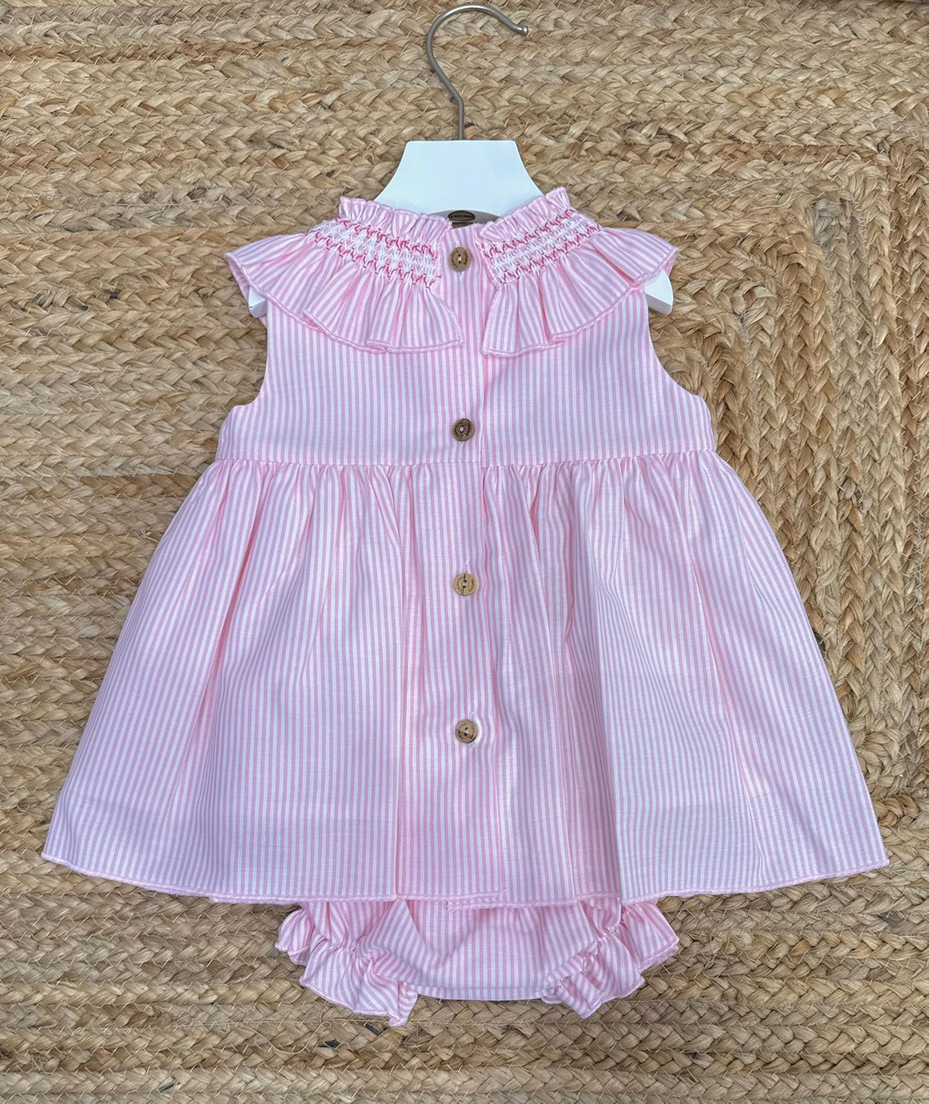 Completo con copripannolino con chiusura posteriore con bottoni in legno naturale, con collo rush e con punto a smock