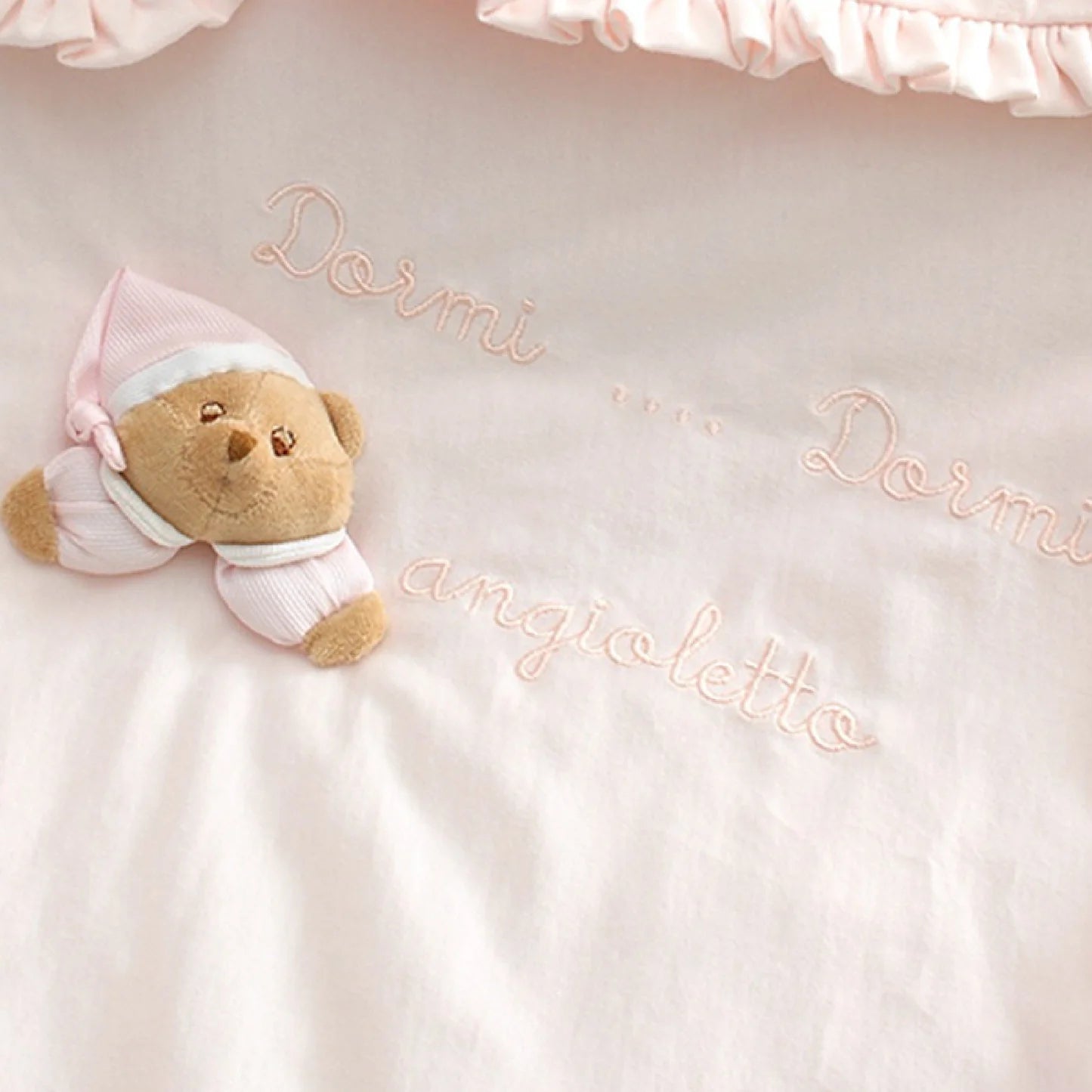 La copertina da carrozzina Nanàn della linea Puccio è una morbida coperta in jersey per coccolare il tuo bambino in ogni momento. Un manto morbidissimo, nel quale avvolgere il bebè nel suo lettino, per farlo sentire caldo e protetto. La romantica copertina è decorata con due cuoricini e con l'applicazione del tenero orsetto Puccio. Gli amici d'infanzia avvolgono di tenerezza e divertimento ogni momento della giornata del tuo bebè. Dimensioni: 90x80cm