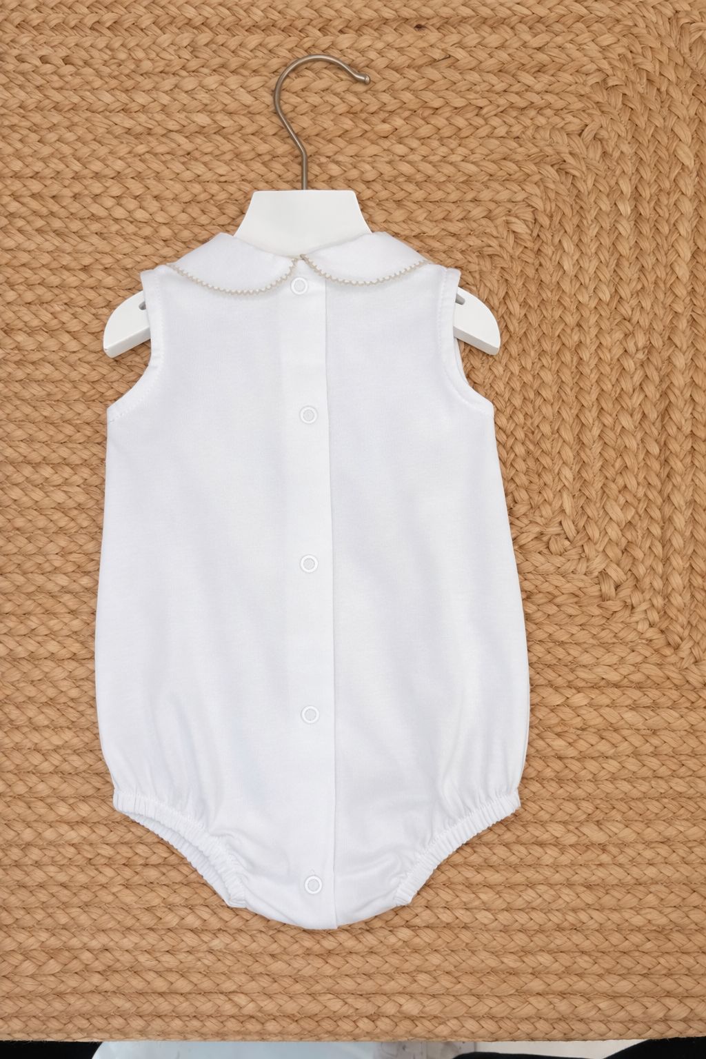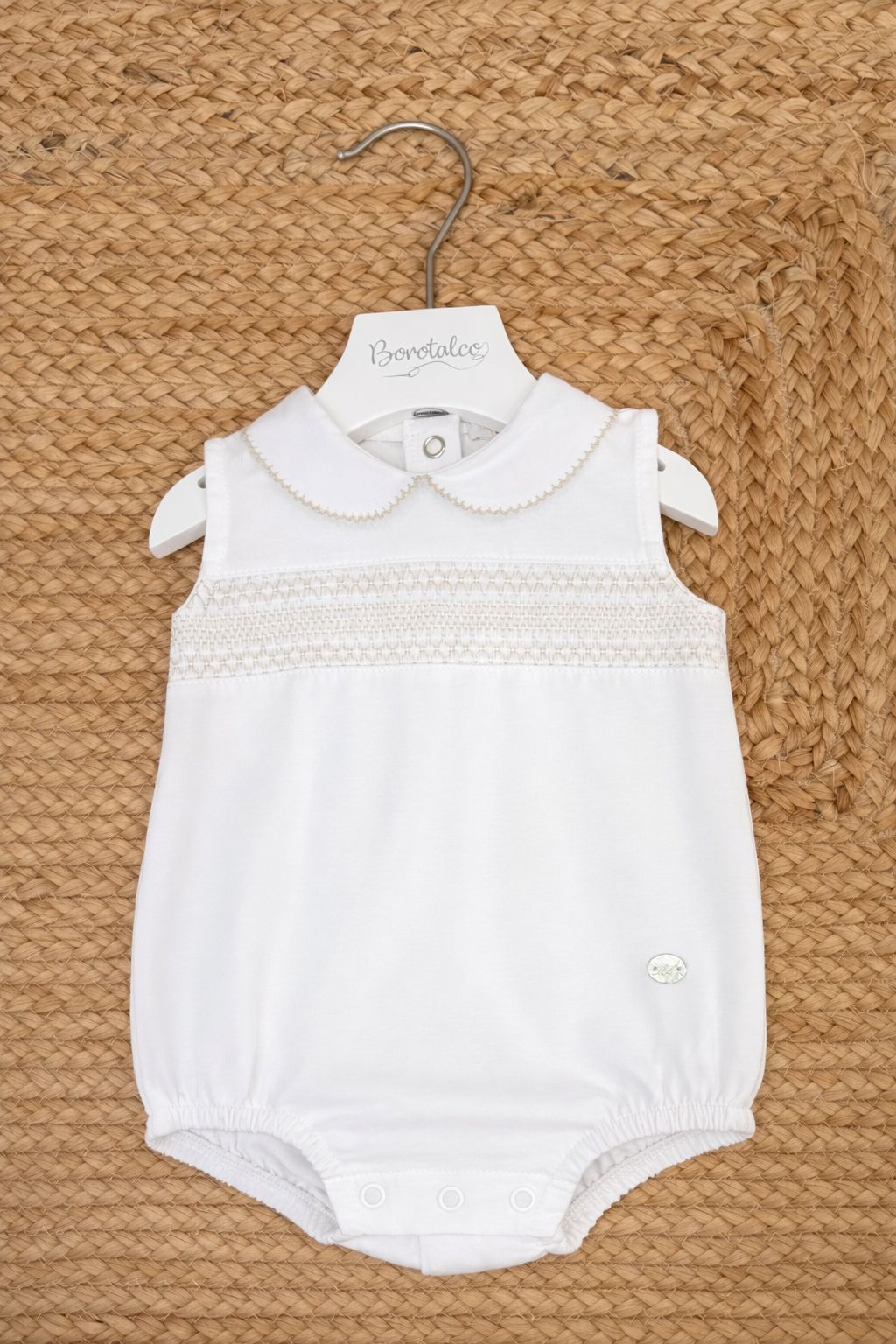 pagliaccetto in cotone con punto a smock e bottoni in madreperla