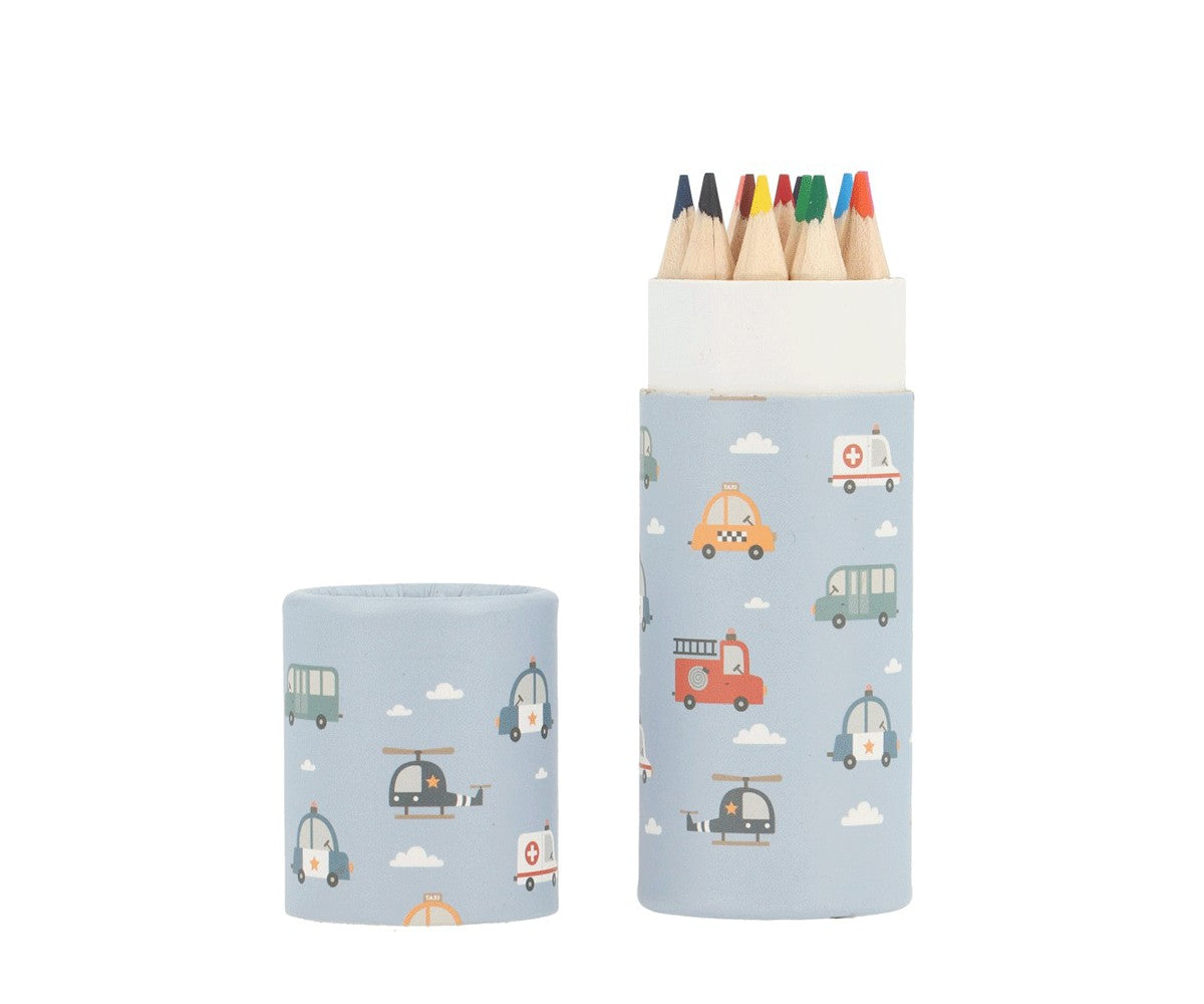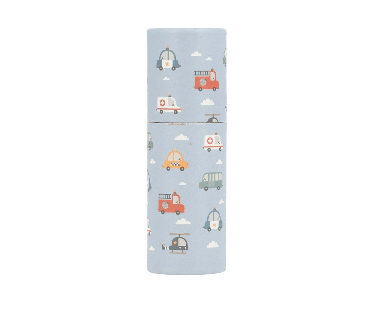 Tubo di cartone decorato con i disegni della collezione Tutete Scuola 2025.