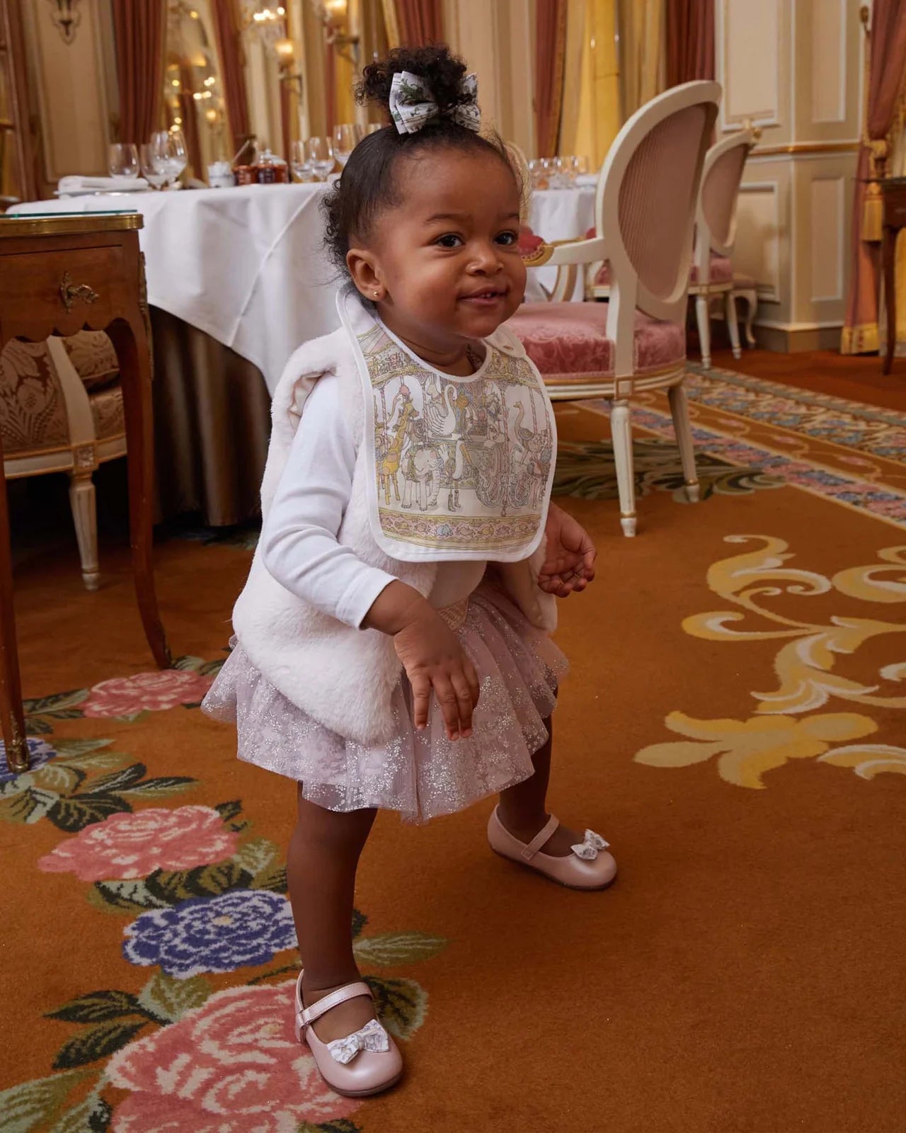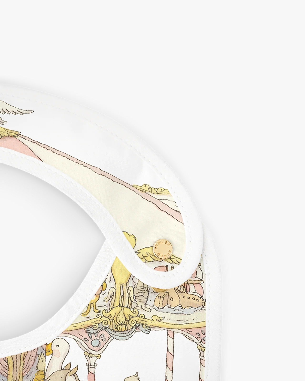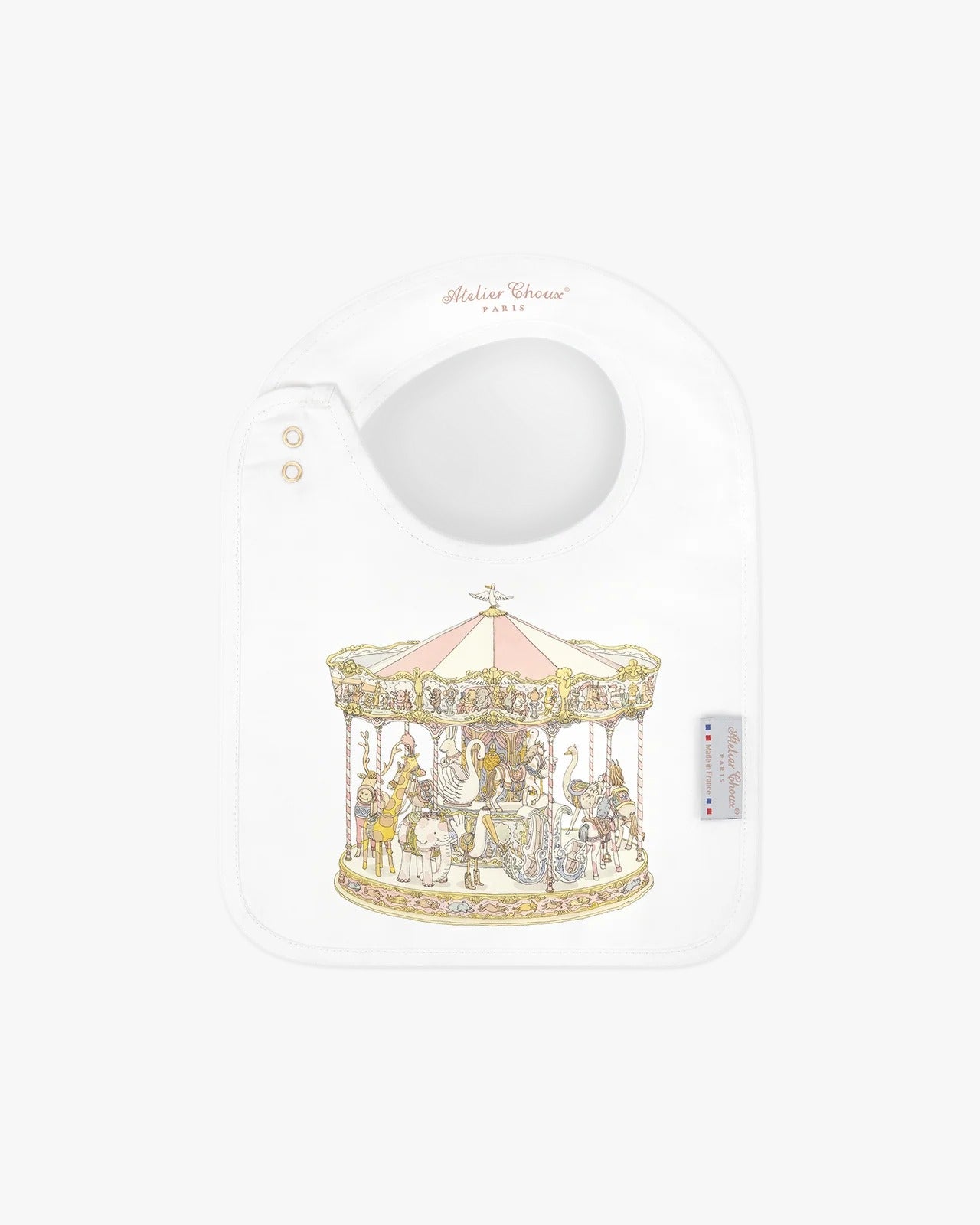 Reversibile e decorato con illustrazioni originali su entrambi i lati, il bavaglino Atelier Choux unisce praticità a fascino artistico. Il pettolo è regolabile e presenta bottoni dorati marchiati. Raccomandato dalla nascita fino ai 24 mesi.
