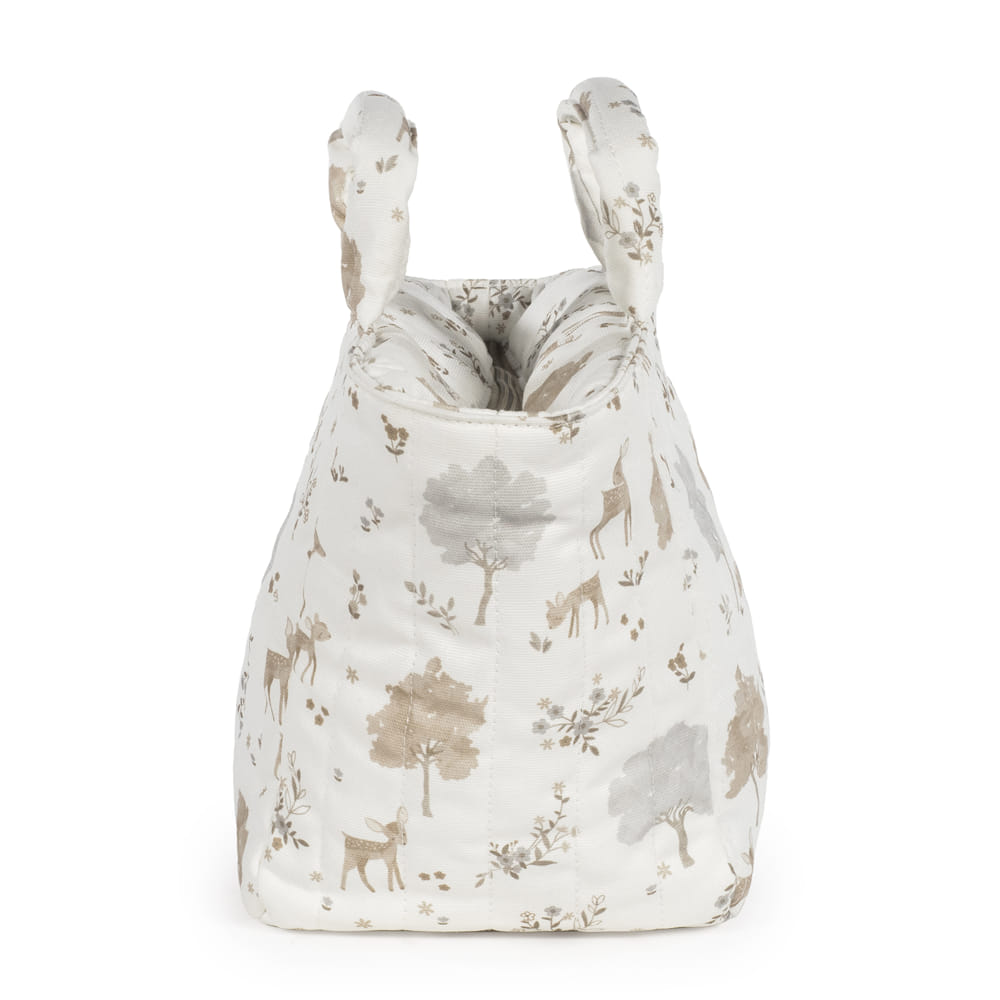 Il beauty case per bebé Nara di Pasito a Pasito, realizzato in 100% cotone con una delicata stampa di cervi e alberi in tonalità neutre, è una piccola borsa pensata appositamente per trasportare tutti i prodotti per la cura del bambino quando si è fuori casa. È un modello unico, dallo stile raffinato, progettato per adattarsi perfettamente alle esigenze quotidiane. Il suo design semplice, elegante e pratico offre uno spazio compatto ma ben organizzato, ideale per contenere gli elementi essenziali per l’igiene del bebé, come pettini, lozioni e altri piccoli oggetti che spesso si perdono all’interno della borsa maternità. Dispone di una chiusura con zip per un’apertura facile e veloce.