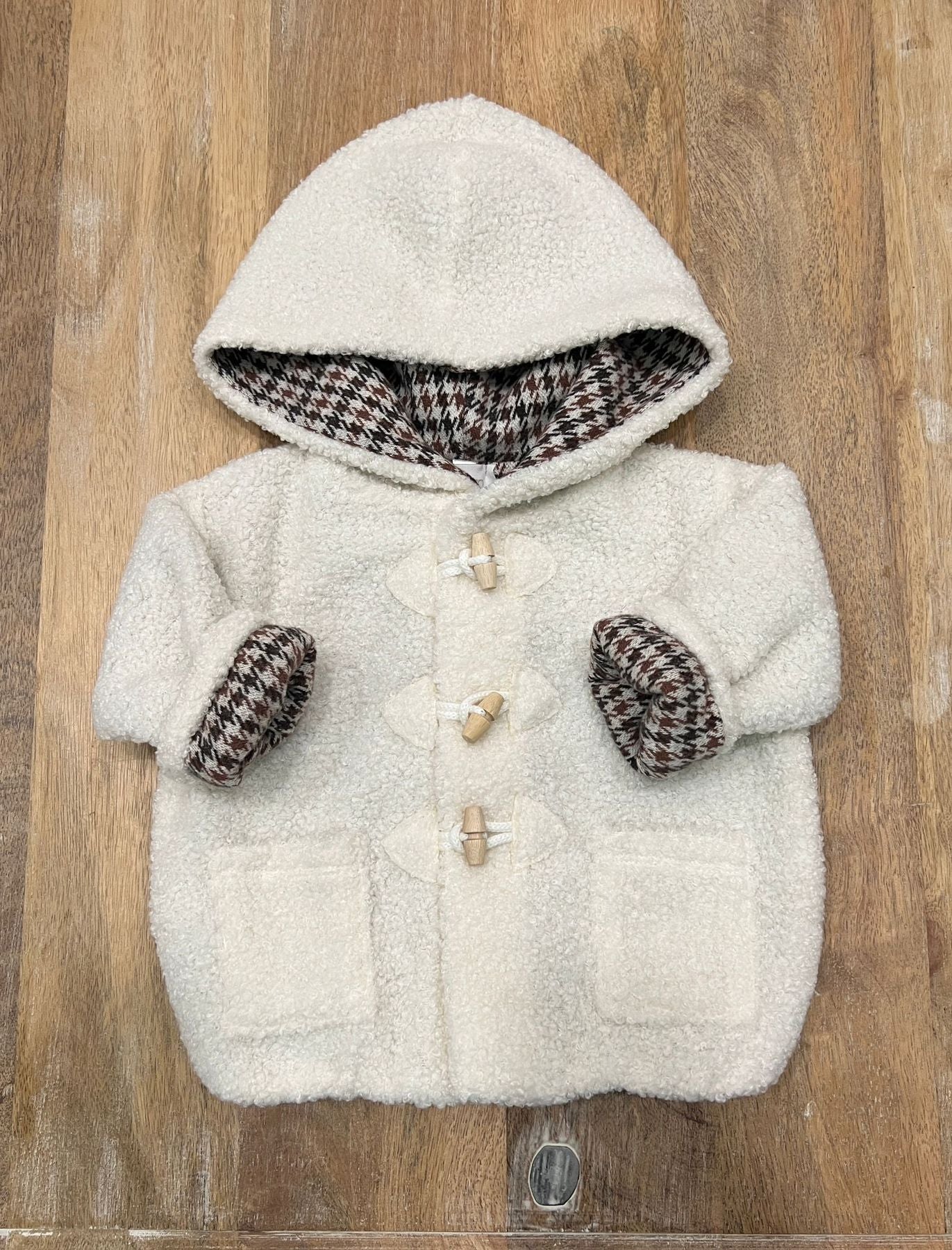 Cappotto in teddy con cappuccio