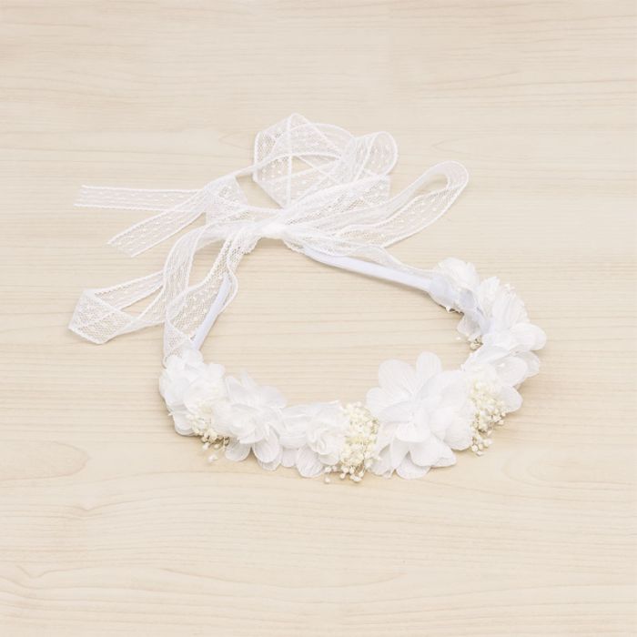 Fiori di 5,3 e 2 cm. ca. sulla fascia da 5 mm. ca. e striscia di 75 cm. ca. lungo