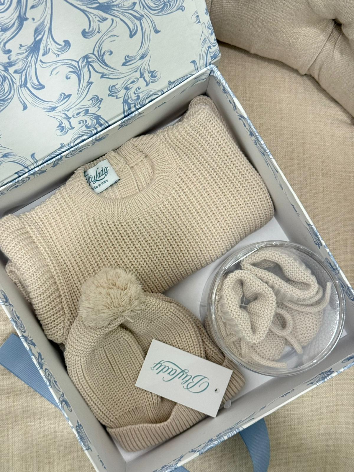 Set con pagliaccetto,cappello e babbucce ,unico e personalizzabile con il nome della tua/o bambina/o racchiuso in una scatola che potrai riutilizzare