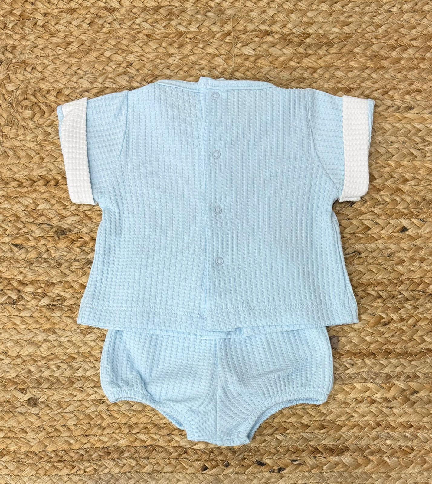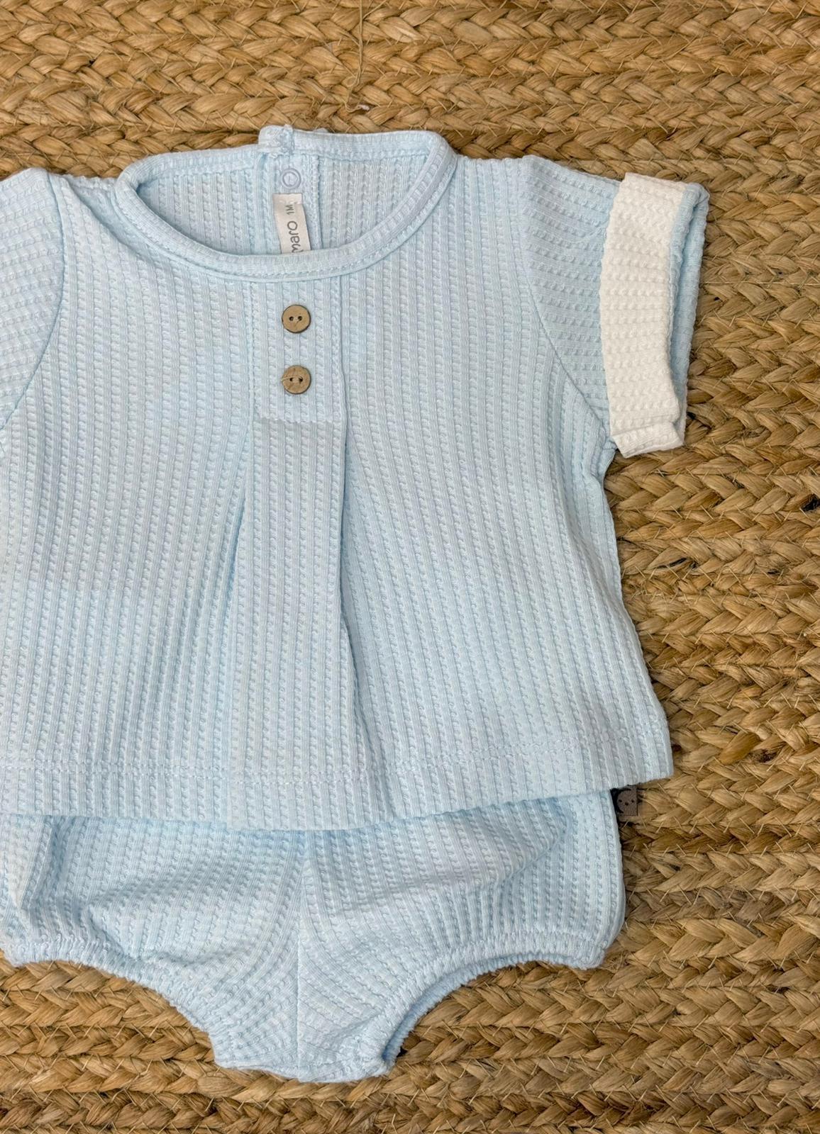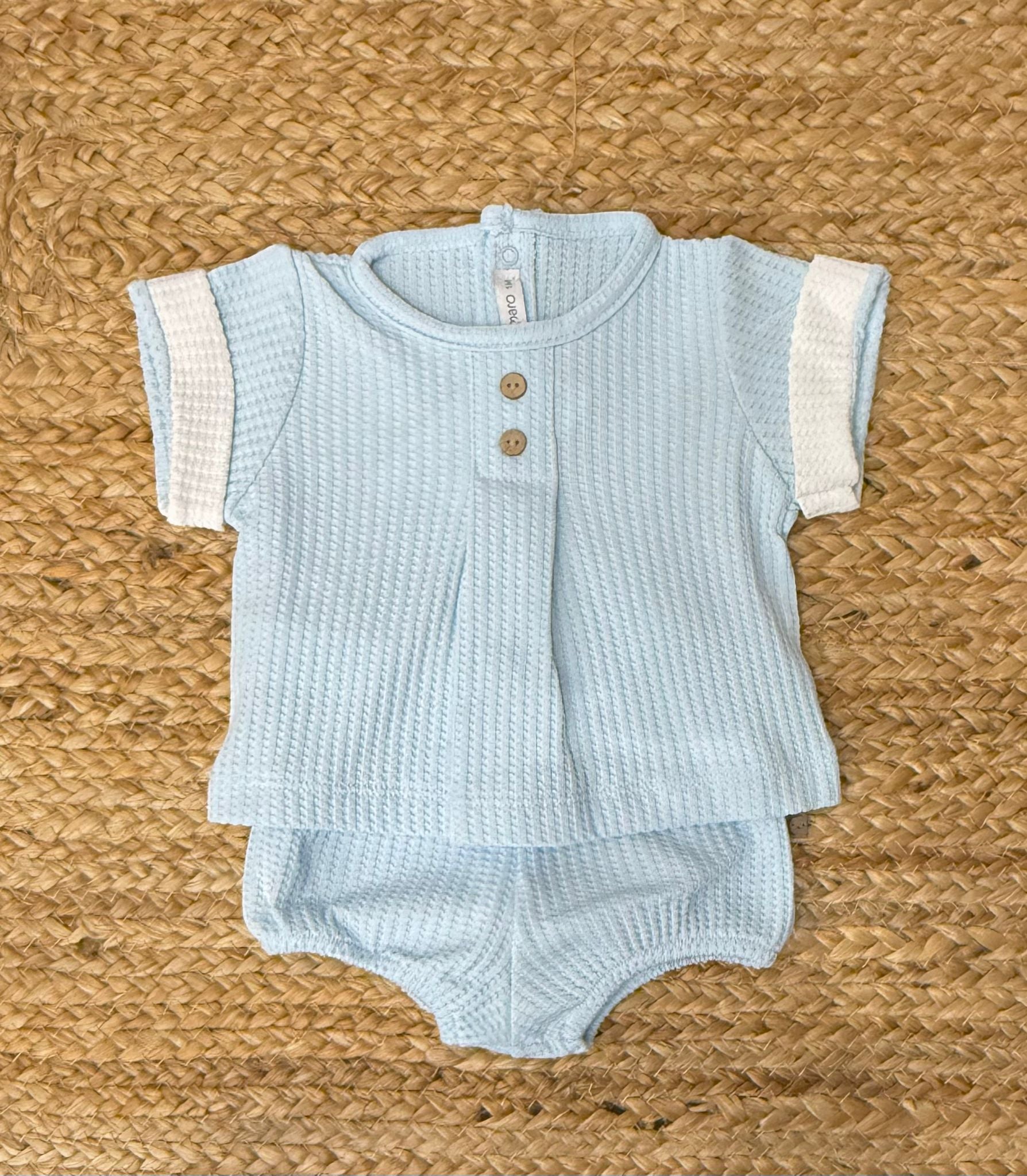 Completo a nido d'ape con maglia con bottoni in legno naturale e copripannolino