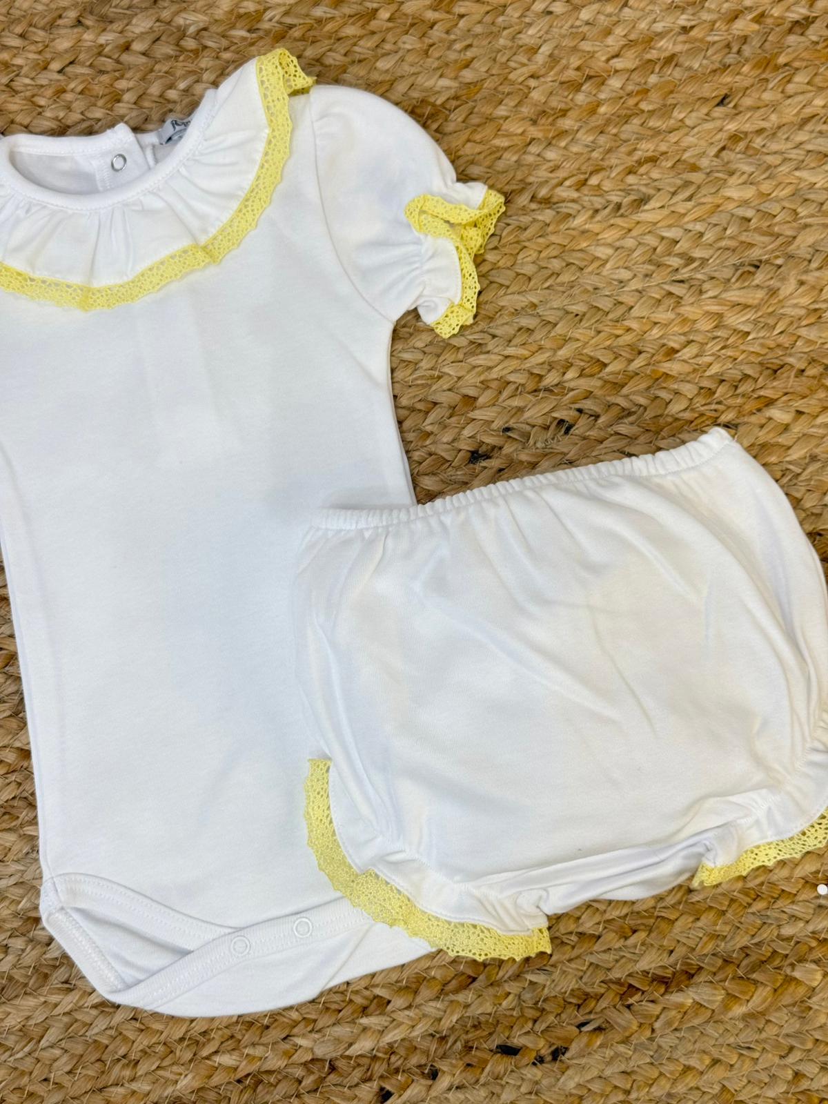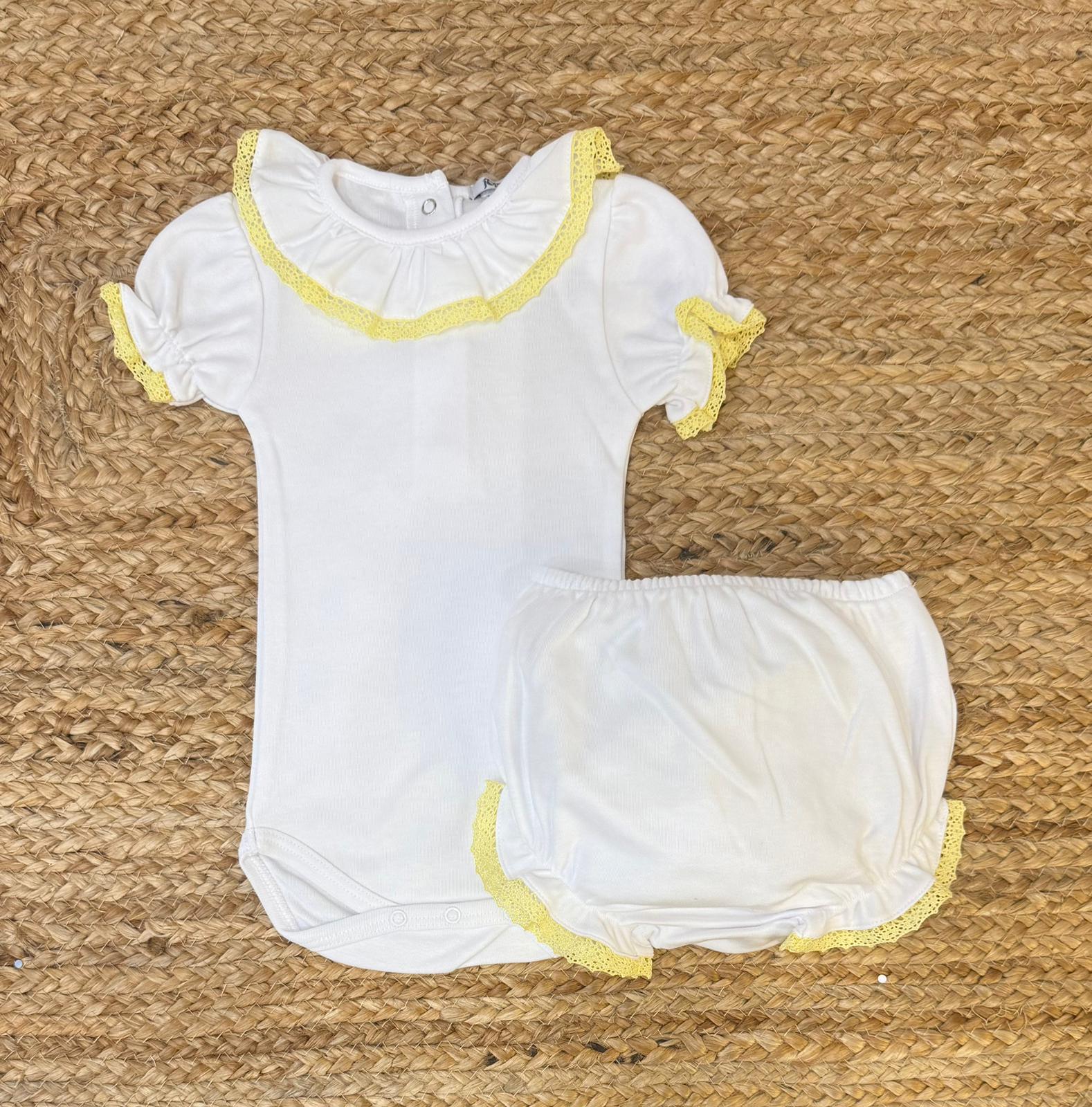 Completo con body e copripannolino con rush a merletto