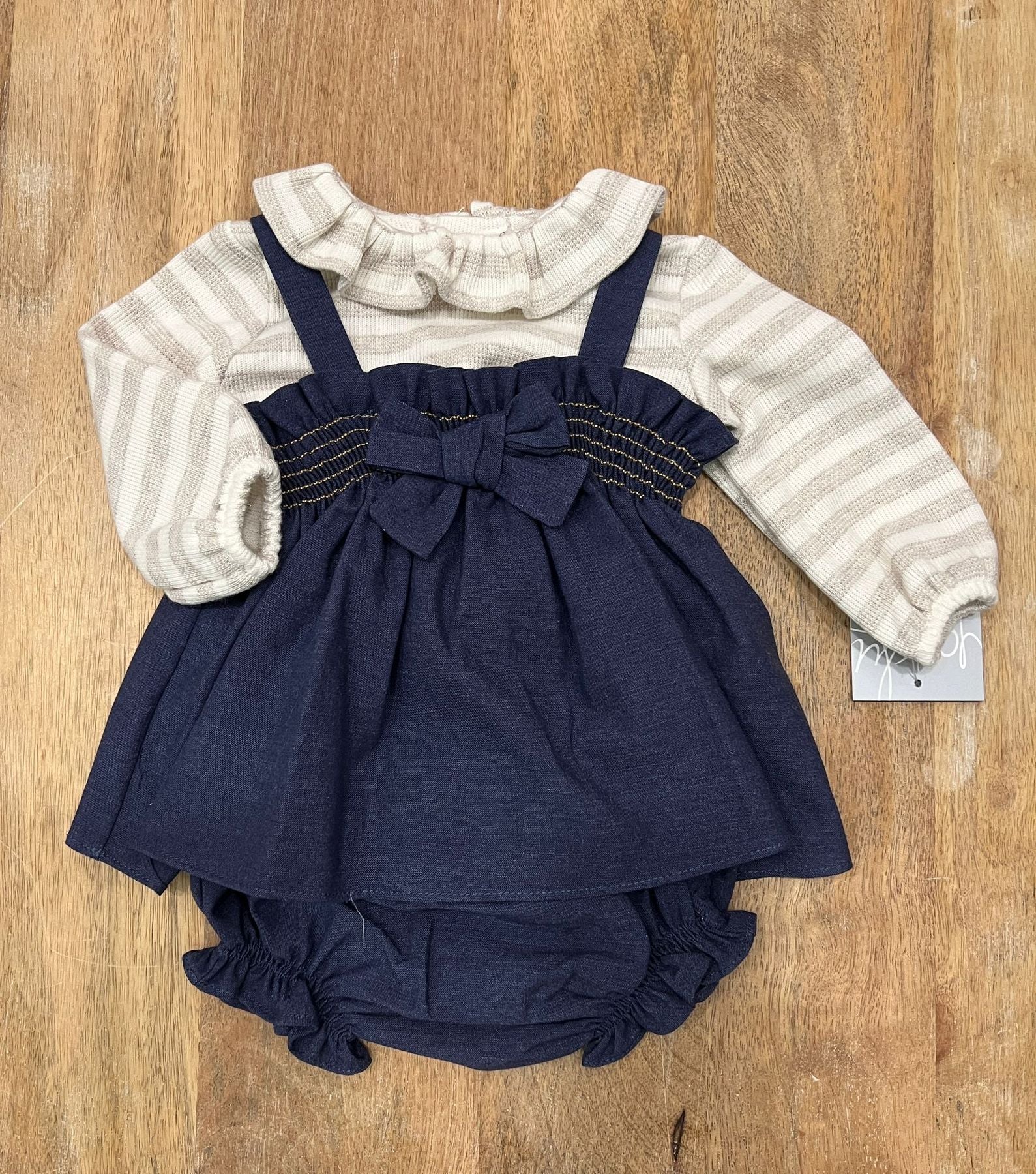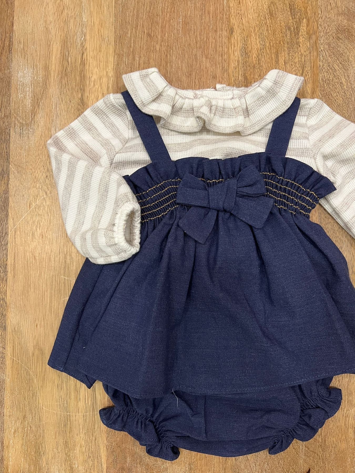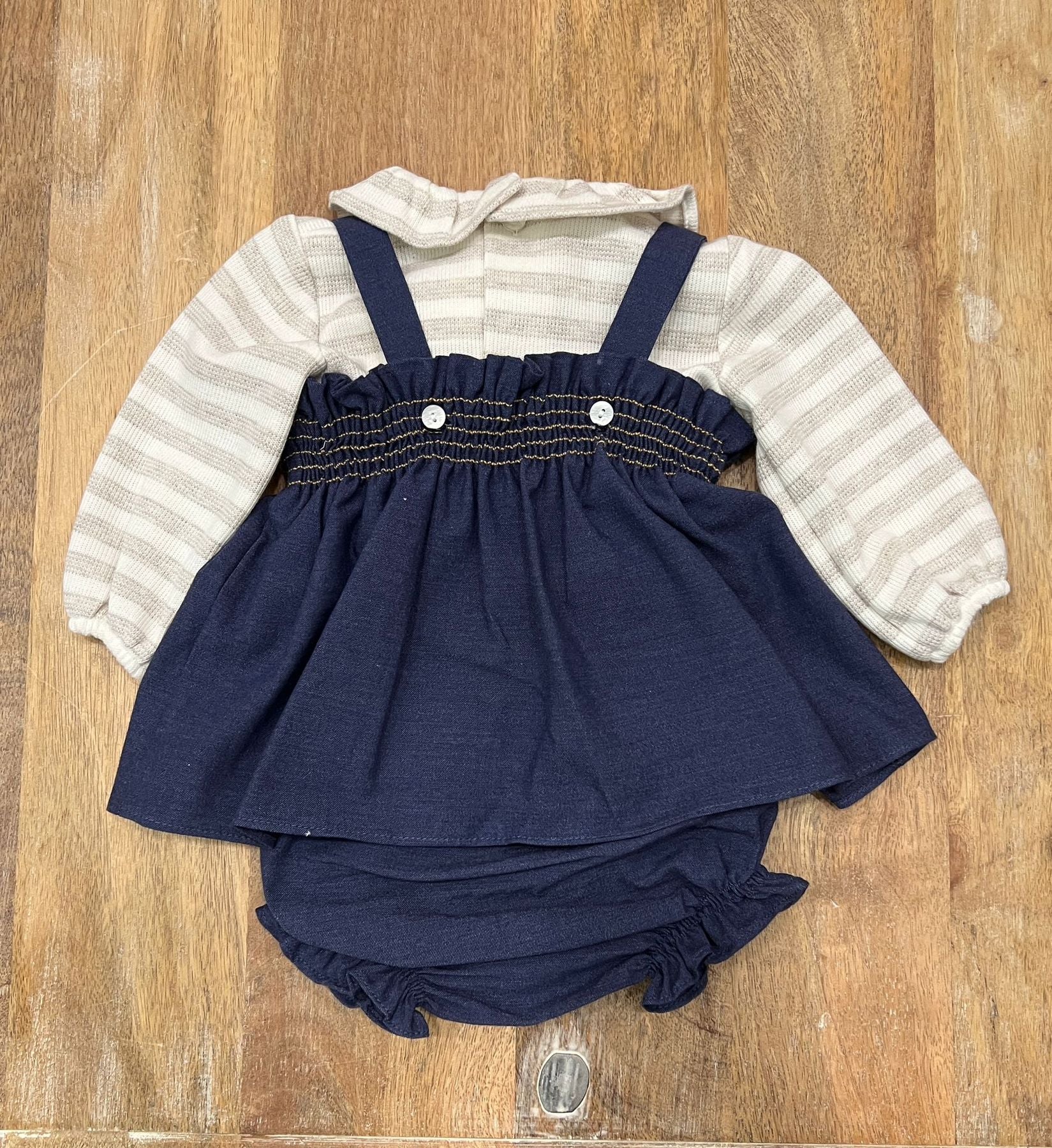 Completo con maglia in lanetta, gonna a salopette e mutandina