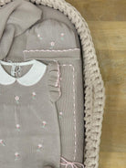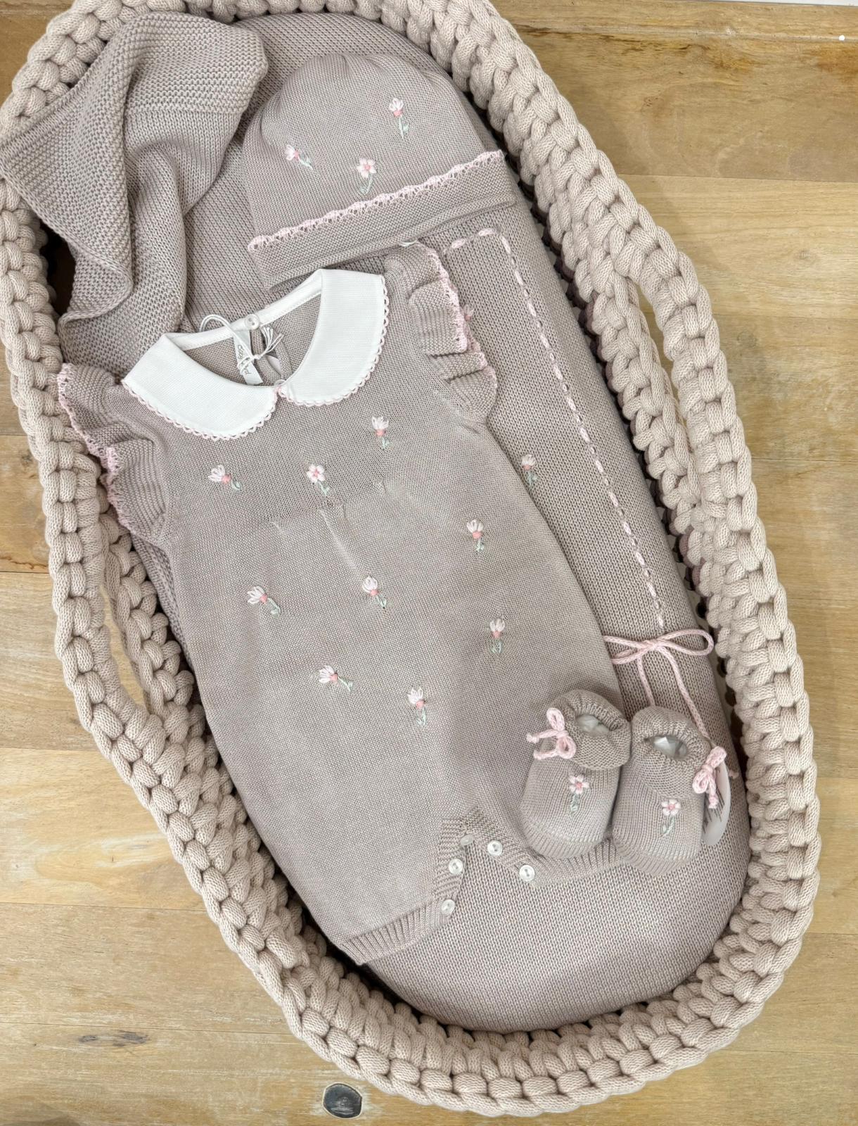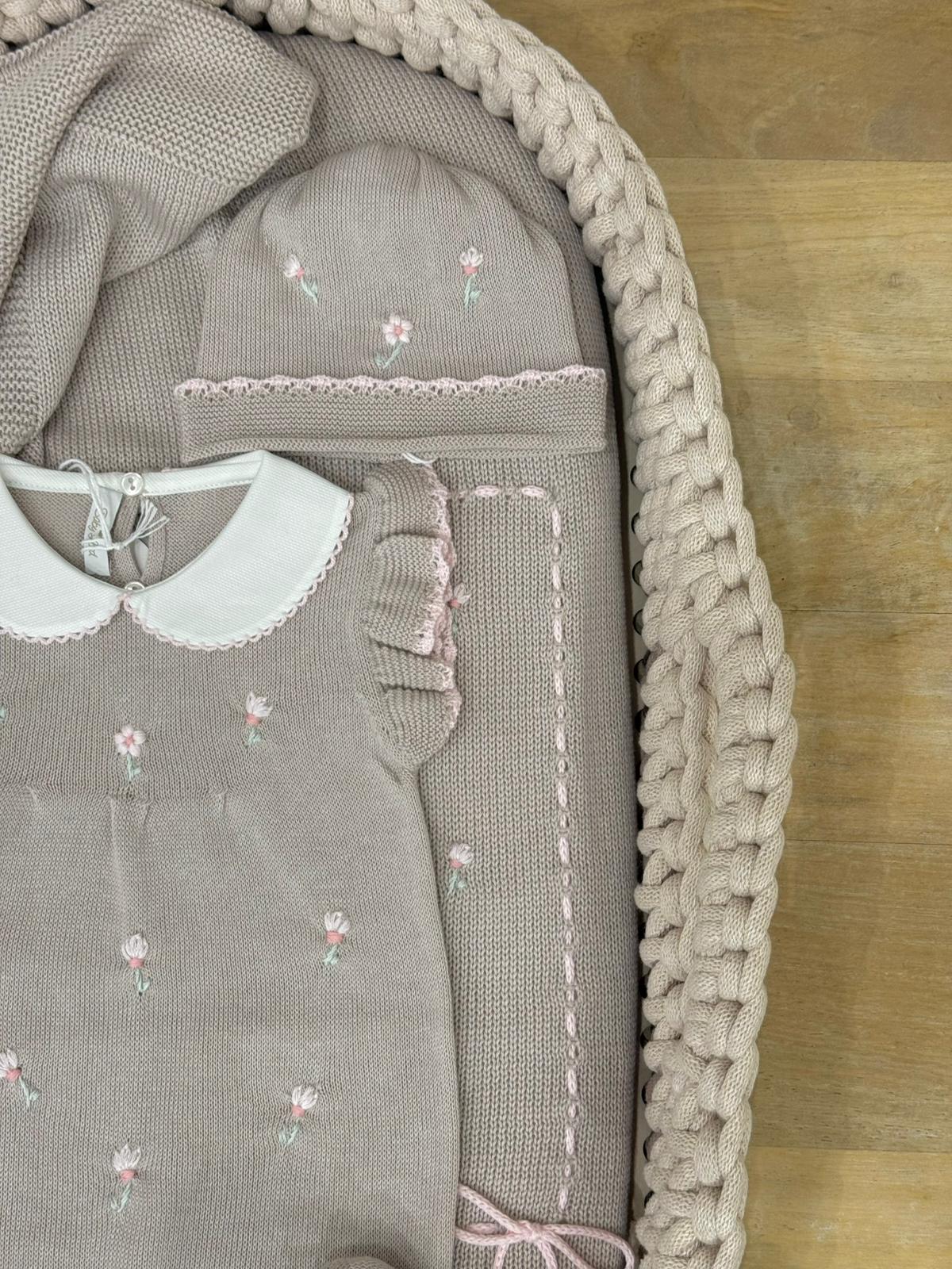 Pagliaccetto con cappello ,babbucce e scialle tutto realizzato con ricamo a vapore
