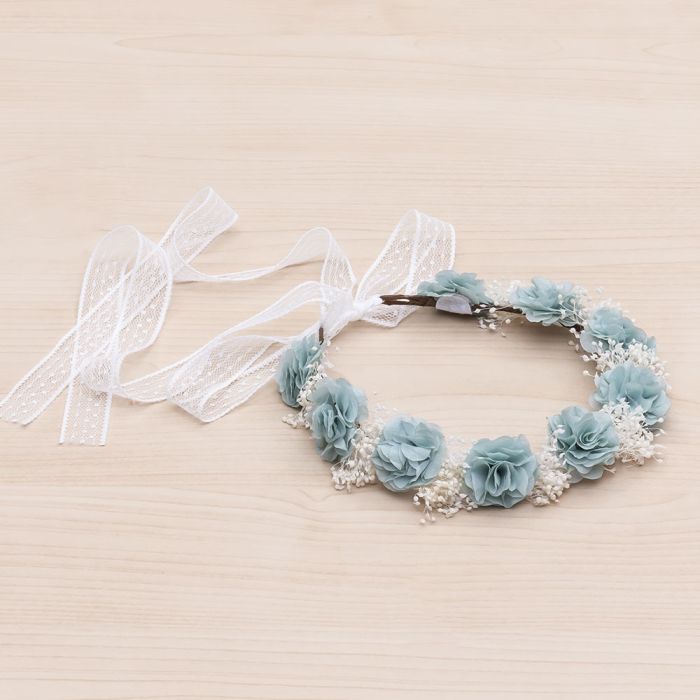 Copricapo lungo 35 cm con fiori di 3 cm e nastro di circa 50 cm