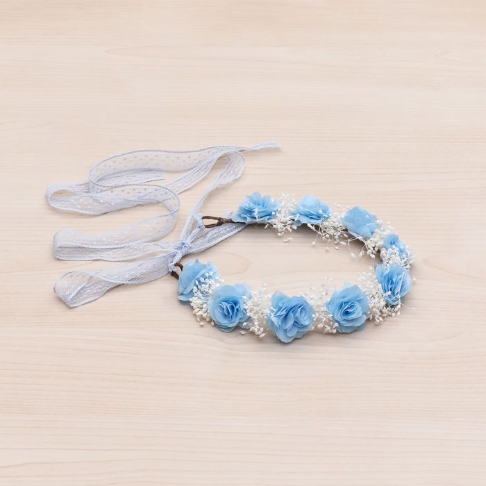 Copricapo lungo 35 cm con fiori di 3 cm e nastro di circa 50 cm