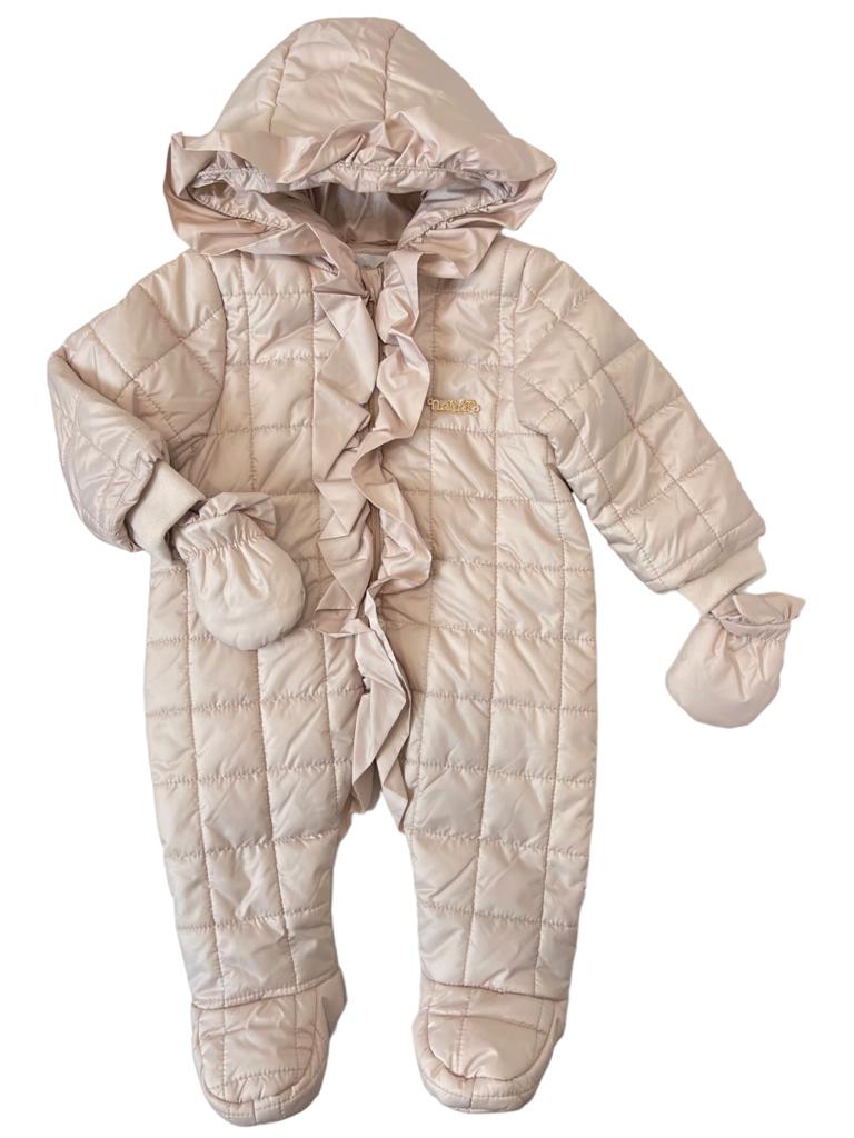 Il soffice tutone imbottito è l'ideale per portare a spasso il tuo bebè avvolto dalla morbidezza, mantenendolo al caldo e libero di muoversi. Reso particolare dalle tenere orecchie sul cappuccio e due tasche a forma di orsetto.