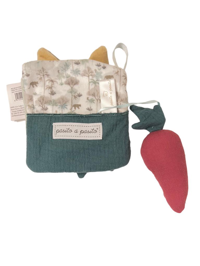 Gioco da attività Con sonaglio e tasca stimola il bambino dai suoi primi mesi.Conforme agli standard di sicurezza per i giocattoli EN-71.