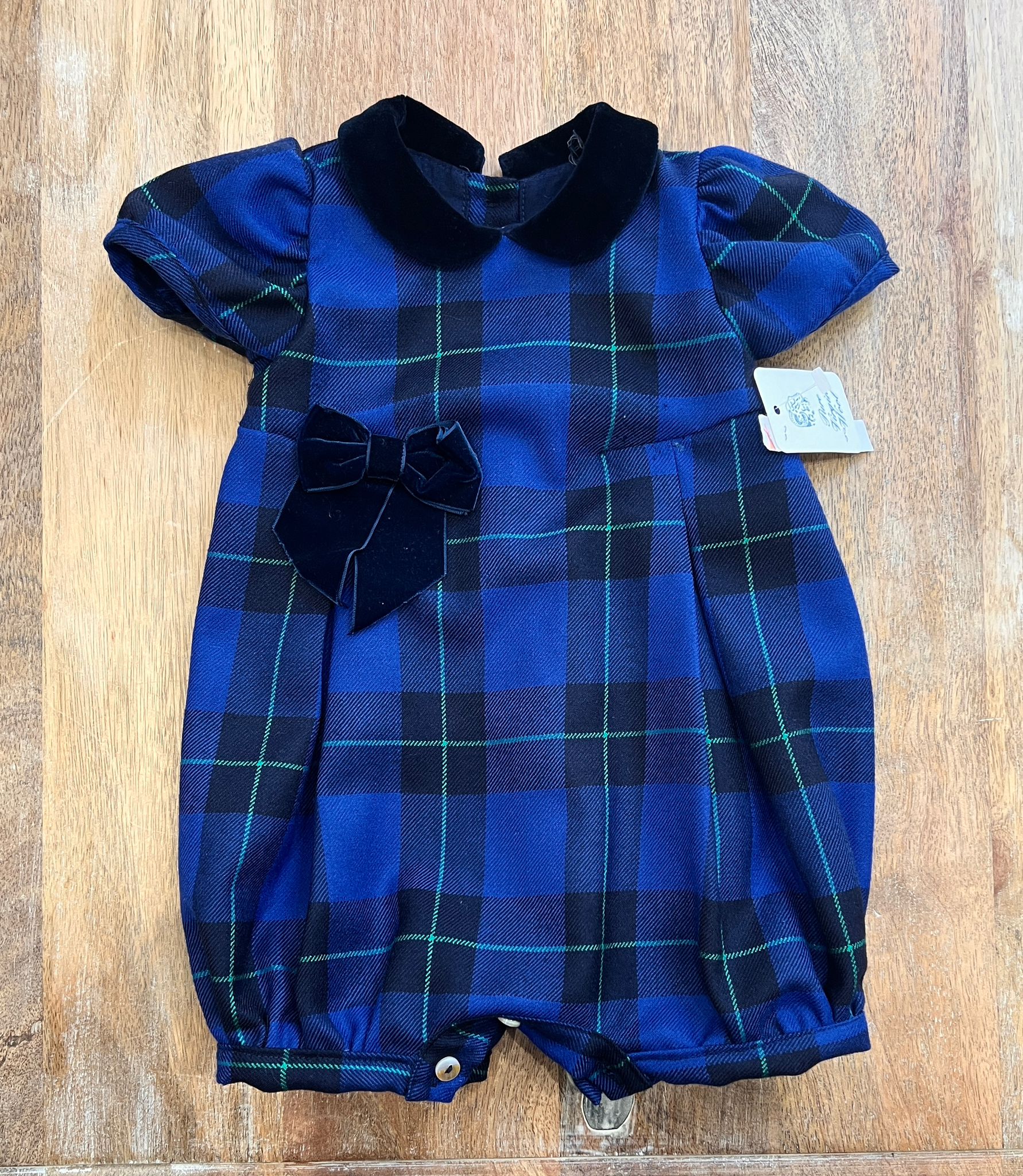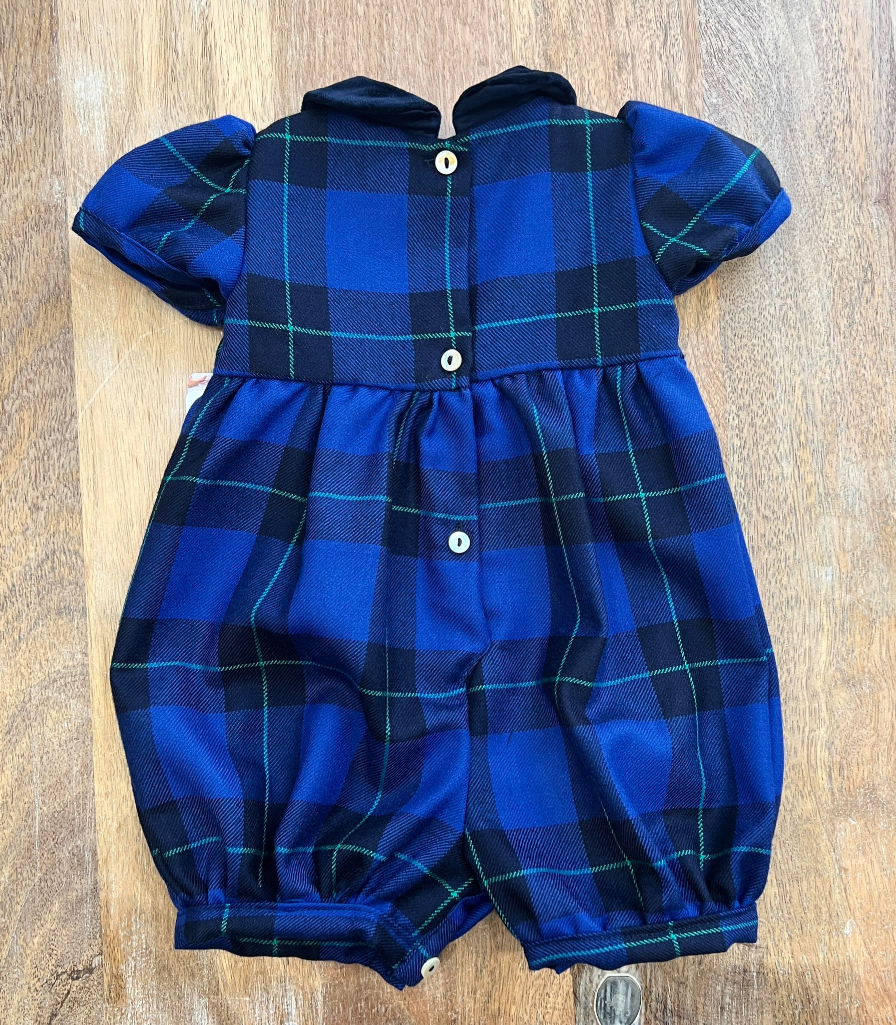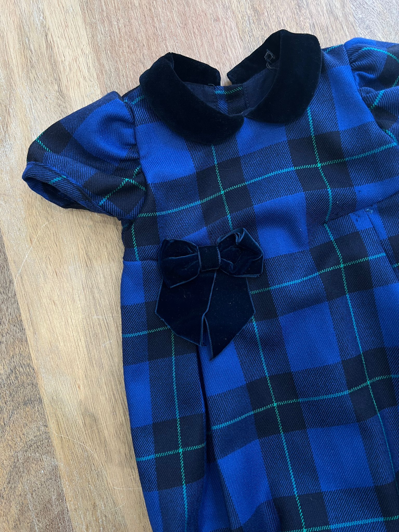 Pagliaccetto a quadri con collo e fiocco in velluto.