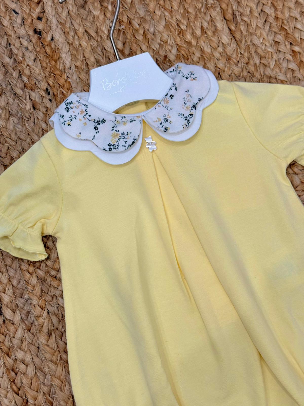 Pagliaccetto con apertura posteriore, colletto fiorato , elegante e delicato.