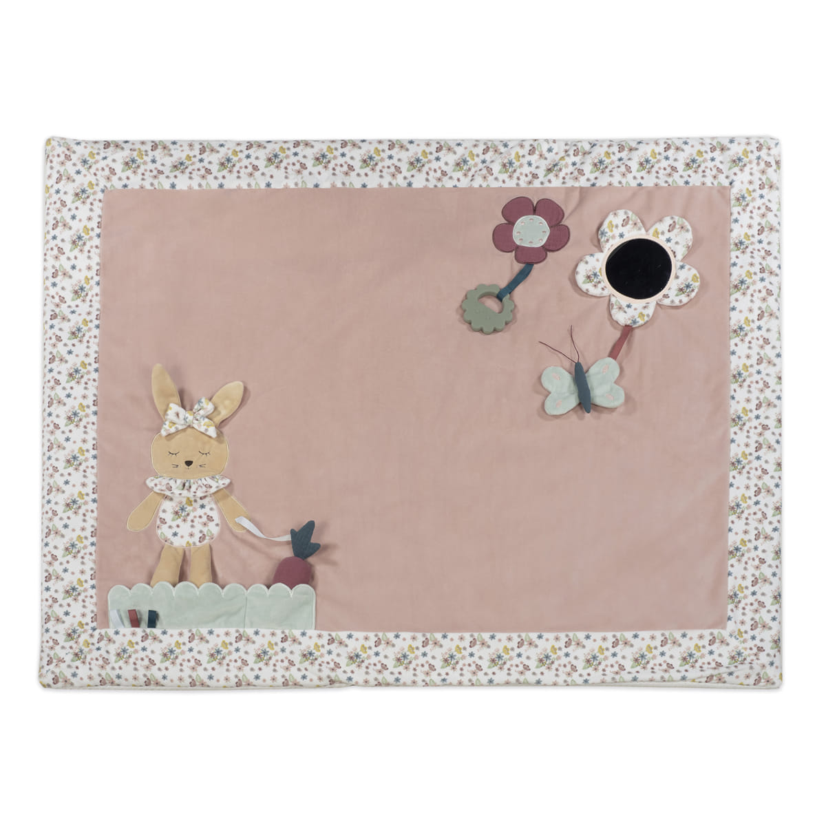 La coperta per gattonare con il coniglietto rosa è l’accessorio perfetto per stimolare e intrattenere il bambino mentre esplora l’ambiente circostante. Progettata con dettagli affascinanti e funzioni interattive. Questa coperta offre al bambino uno spazio sicuro e divertente per sviluppare le capacità motorie e sensoriali. Realizzata in morbido velluto, offre al bambino una superficie comoda e sicura per muoversi liberamente, incoraggiando l’indipendenza e l’esplorazione. Include varie attività, come un fiore con specchio, una dentiera e diverse texture per incoraggiare la curiosità e il gioco immaginativo. Le diverse texture e gli elementi interattivi aiutano a sviluppare le capacità sensoriali e di motricità fine del bambino. L’ampia superficie offre al bambino molto spazio per gattonare e giocare. Ideale da utilizzare in qualsiasi stanza della casa. Il design e i colori neutri rendono questa coperta perfettamente integrabile con l’arredamento di qualsiasi casa, aggiungendo un tocco di tenerezza e divertimento. Questa coperta per gattonare Pasito a pasito è la scelta ideale per i genitori che cercano un prodotto versatile e stimolante per i loro bambini. Offre un ambiente sicuro e accogliente dove i più piccoli possono sviluppare le loro abilità e trascorrere ore di divertimento. Facile da piegare e da trasportare grazie alla borsa per il trasporto. Perfetto da portare a casa dei nonni, al parco o in vacanza. Lavabile a mano o in lavatrice a 30°C. Un regalo perfetto per accompagnare la crescita e la scoperta del vostro bambino. Pasito a pasito protegge il bambino utilizzando i migliori tessuti, privi di coloranti azoici e di sostanze nocive per la salute. Facile da pulire a mano o in lavatrice a 30°C. Conforme alla norma europea EN-71 Sicurezza dei giocattoli +0 anni. Misure 100×80 cm.
