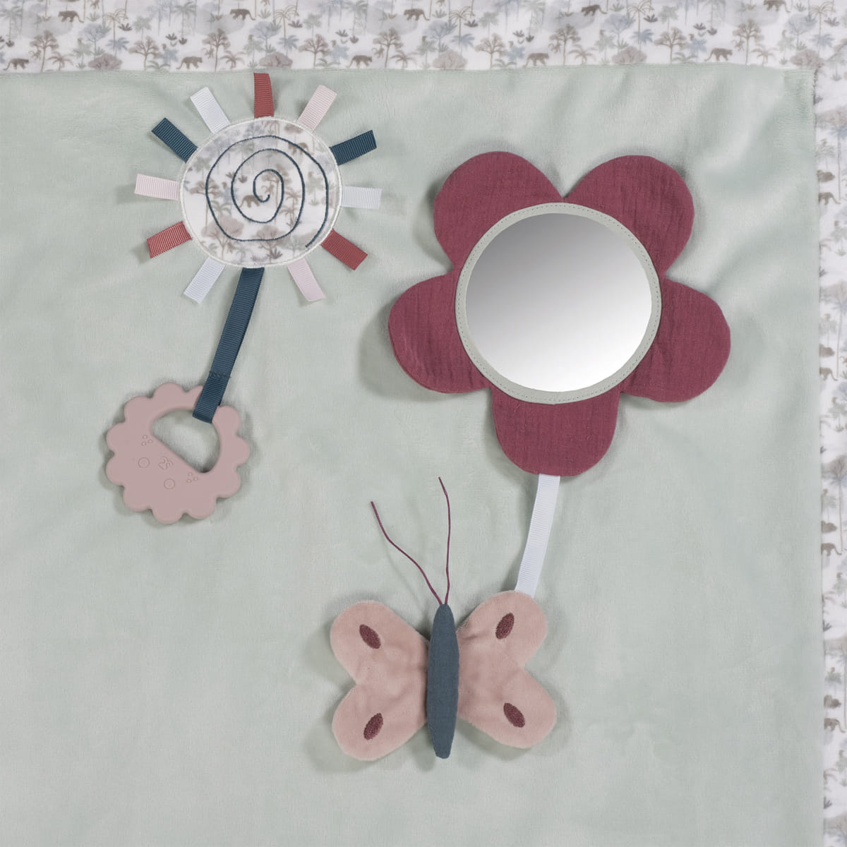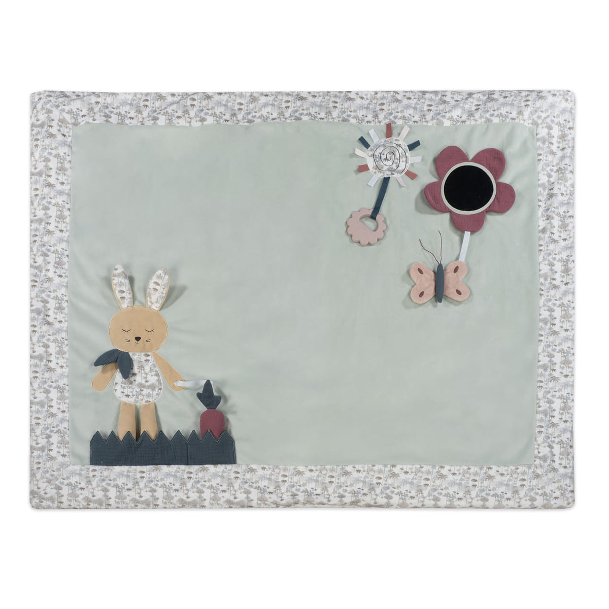 La coperta per gattonare con il coniglietto verde è l’accessorio perfetto per stimolare e intrattenere il bambino mentre esplora l’ambiente circostante. Progettata con dettagli affascinanti e funzioni interattive. Questa coperta offre al bambino uno spazio sicuro e divertente per sviluppare le capacità motorie e sensoriali. Realizzata in morbido velluto, offre al bambino una superficie comoda e sicura per muoversi liberamente, incoraggiando l’indipendenza e l’esplorazione. Include varie attività, come un fiore con specchio, una dentiera e diverse texture per incoraggiare la curiosità e il gioco immaginativo. Le diverse texture e gli elementi interattivi aiutano a sviluppare le capacità sensoriali e di motricità fine del bambino. L’ampia superficie offre al bambino molto spazio per gattonare e giocare. Ideale da utilizzare in qualsiasi stanza della casa. Il design e i colori neutri rendono questa coperta perfettamente integrabile con l’arredamento di qualsiasi casa, aggiungendo un tocco di tenerezza e divertimento. Questa coperta per gattonare Pasito a pasito è la scelta ideale per i genitori che cercano un prodotto versatile e stimolante per i loro bambini. Offre un ambiente sicuro e accogliente dove i più piccoli possono sviluppare le loro abilità e trascorrere ore di divertimento. Facile da piegare e da trasportare grazie alla borsa per il trasporto. Perfetto da portare a casa dei nonni, al parco o in vacanza. Lavabile a mano o in lavatrice a 30°C. Un regalo perfetto per accompagnare la crescita e la scoperta del vostro bambino. Pasito a pasito protegge il bambino utilizzando i migliori tessuti, privi di coloranti azoici e di sostanze nocive per la salute. Facile da pulire a mano o in lavatrice a 30°C. Conforme alla norma europea EN-71 Sicurezza dei giocattoli +0 anni. Misure 100×80 cm.