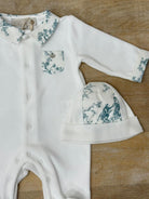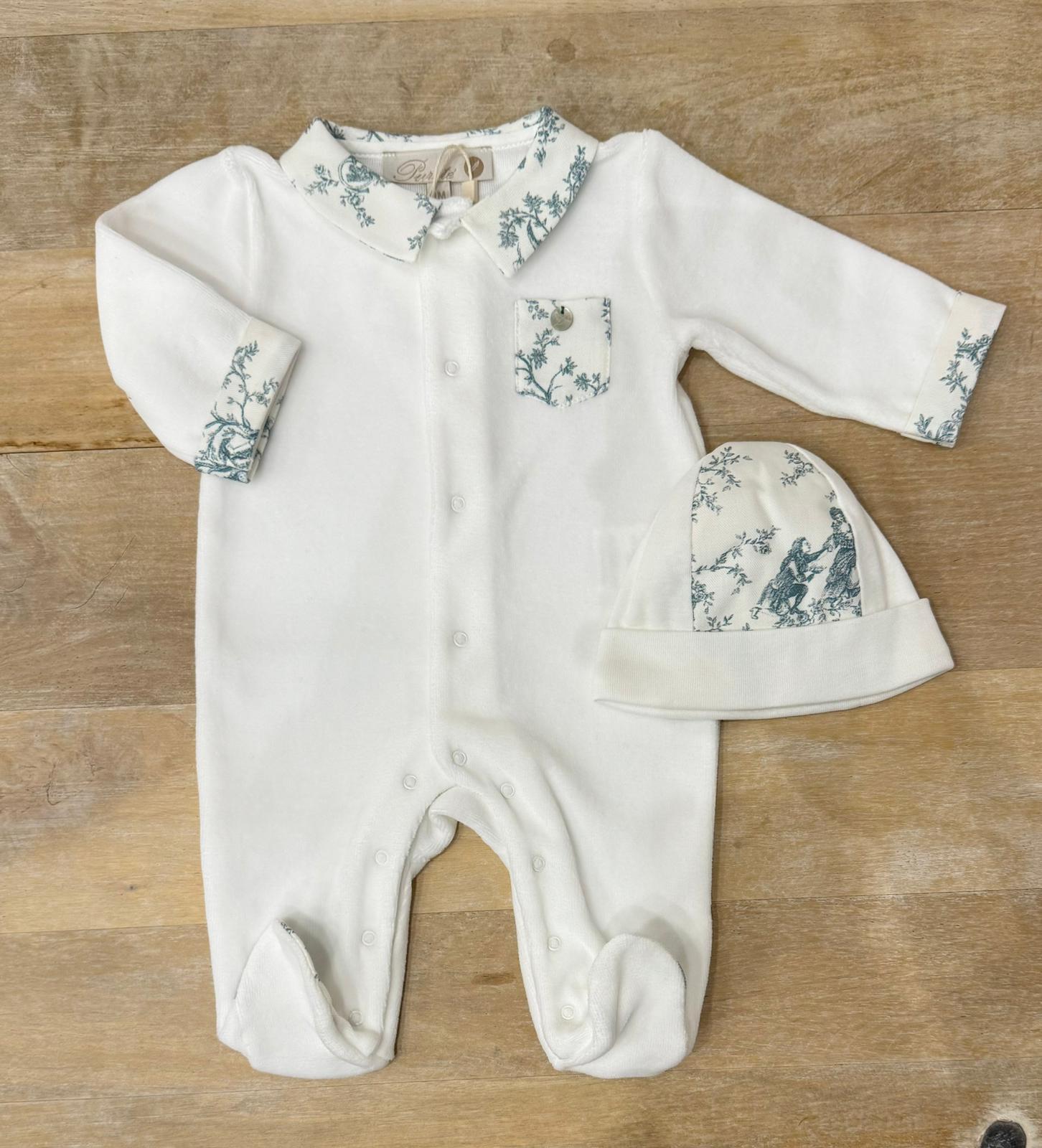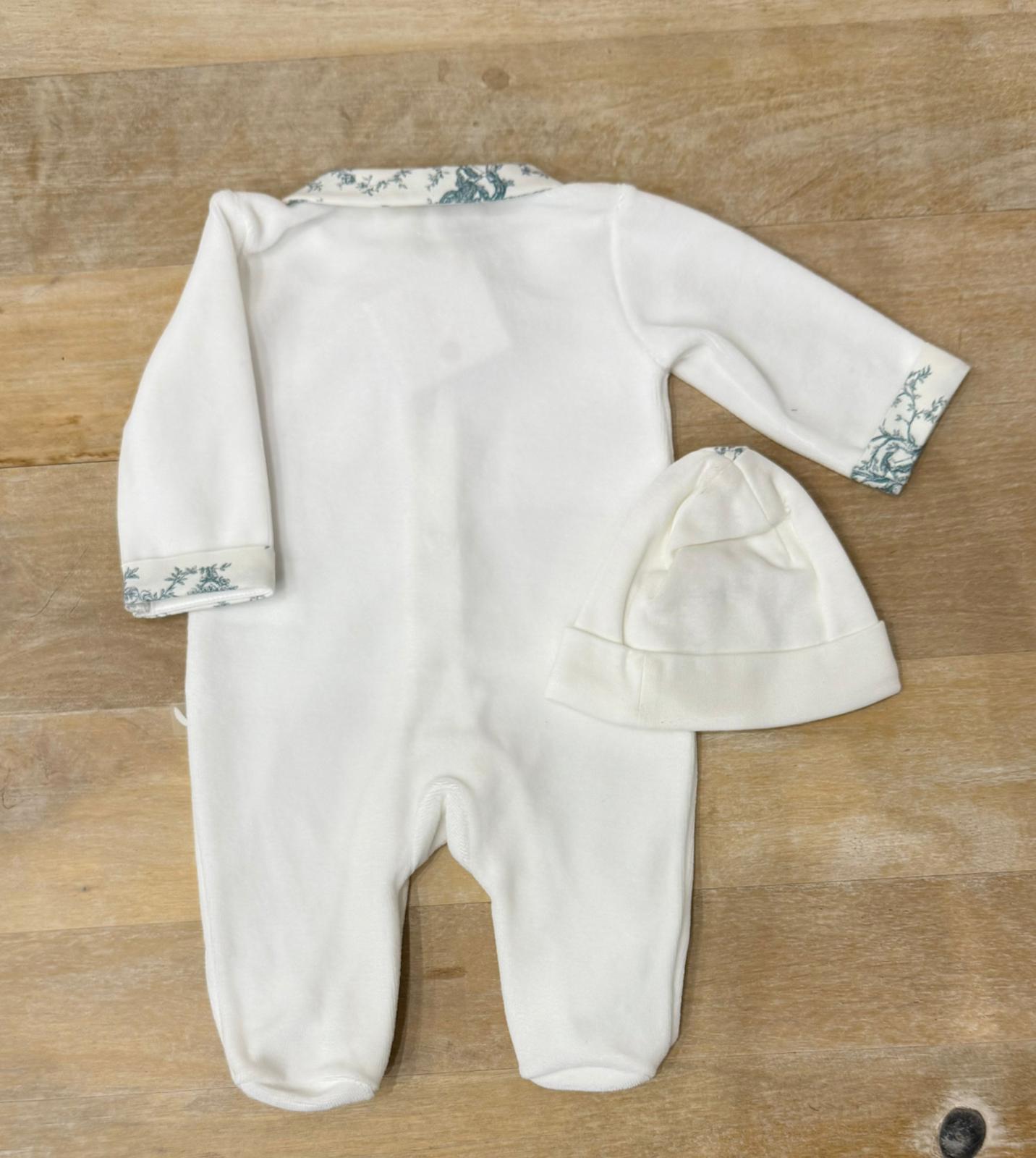 Tutina con apertura anteriore in ciniglia e cappello in cotone